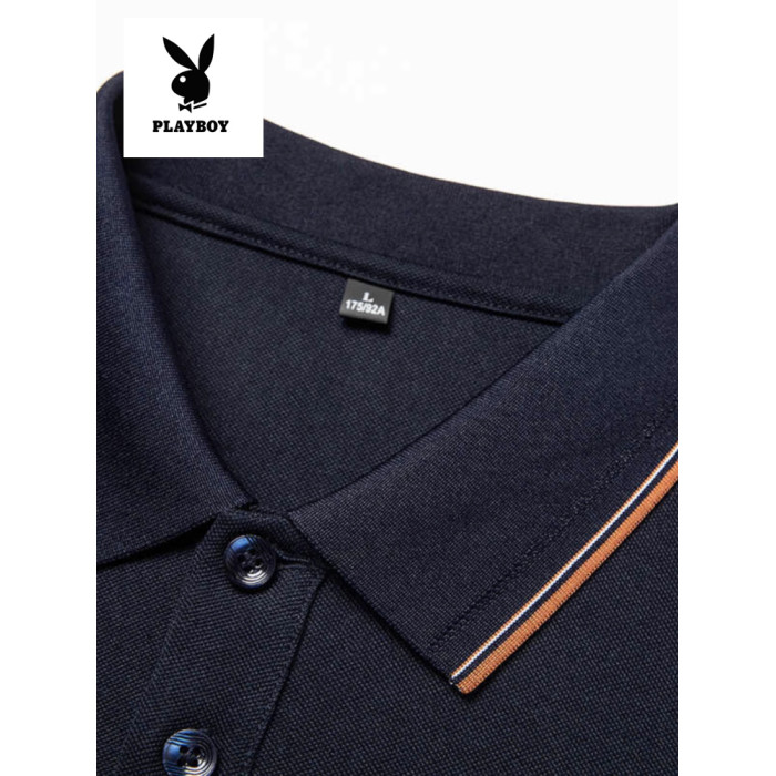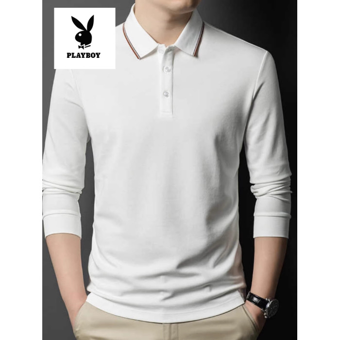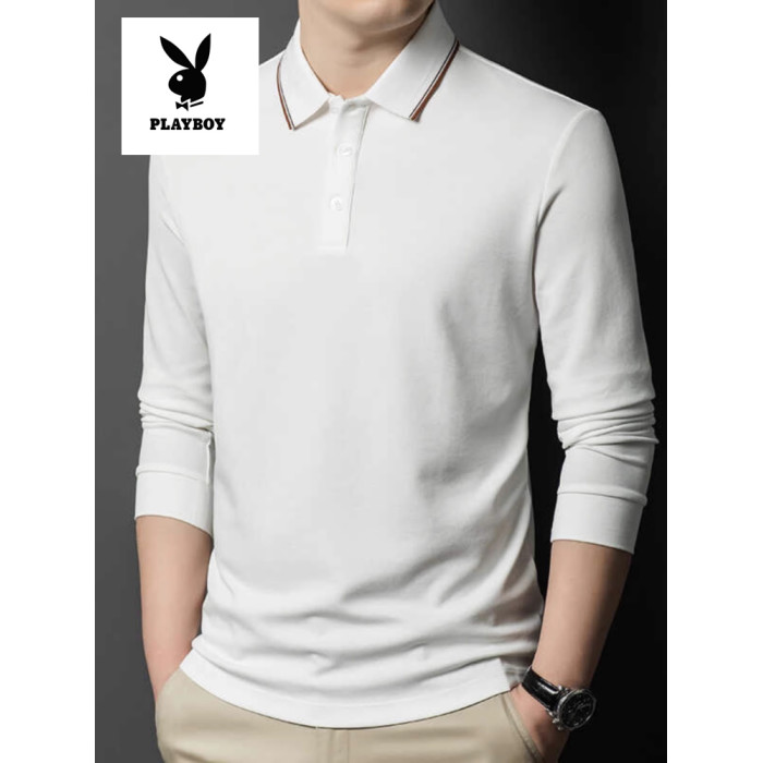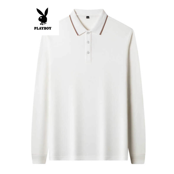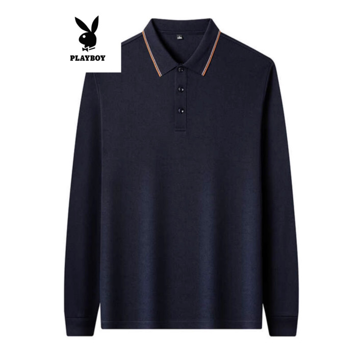 花花公子商務POLO衫男t恤翻領純棉寬松中年爸爸裝體桖上衣長袖