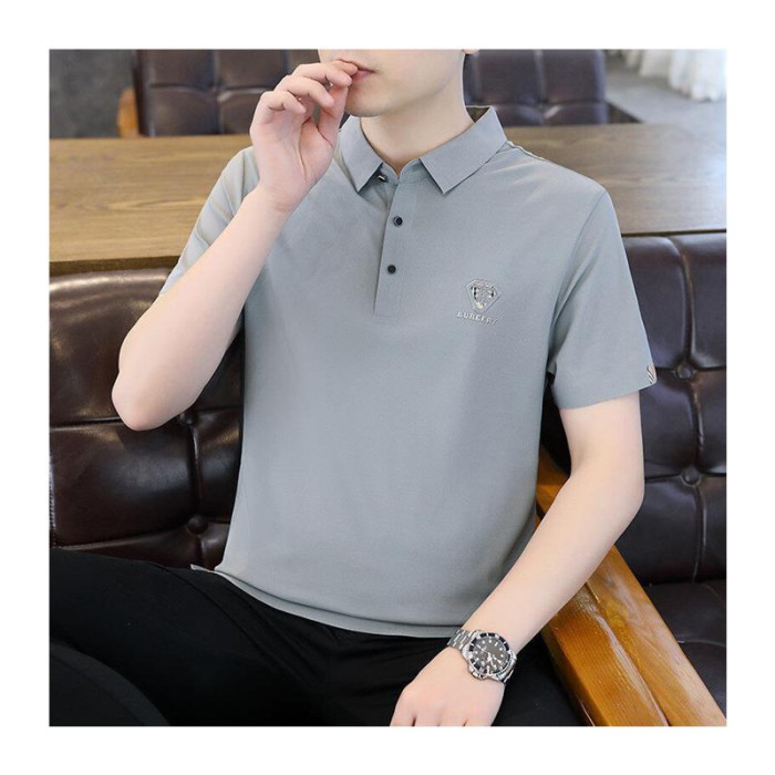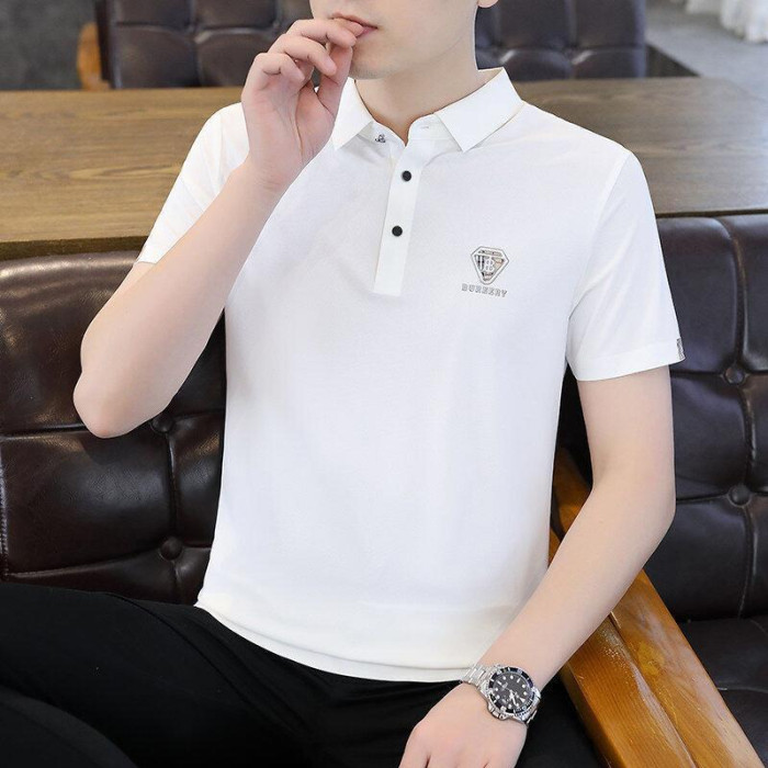 高級新款男士冰絲短袖polo衫夏季休閒潮流寬松薄款無痕速乾男T恤