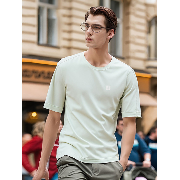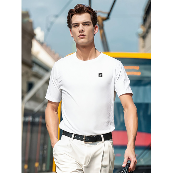 Sllavif高級冰絲白色男t恤短袖夏季透氣2025新款速乾涼感圓領衣服