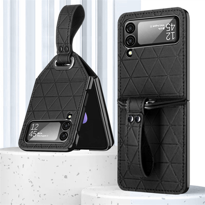 適用三星Flip6手機殼FLIP4菱形格折曡殼 Flip5支架保護手機殼