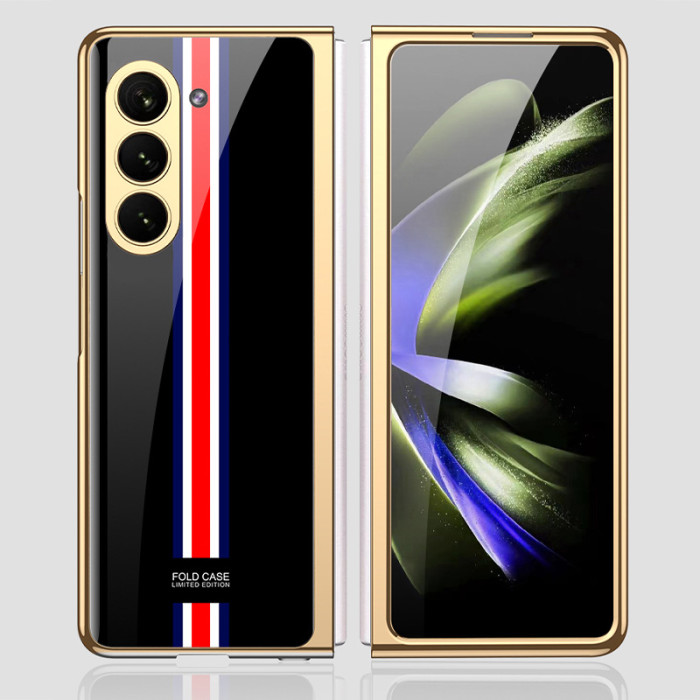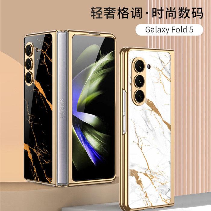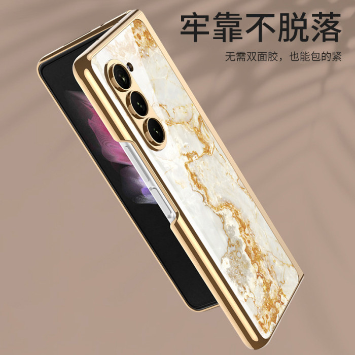 輕奢適用三星zFold5摺疊螢幕手機殼電鍍玻璃彩繪殼fold5防摔保護套