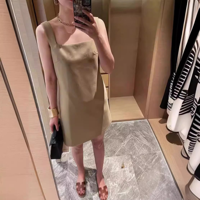 2023春夏打底裙大碼胖mm簡約氣質赫本風方領吊帶連衣裙女22109