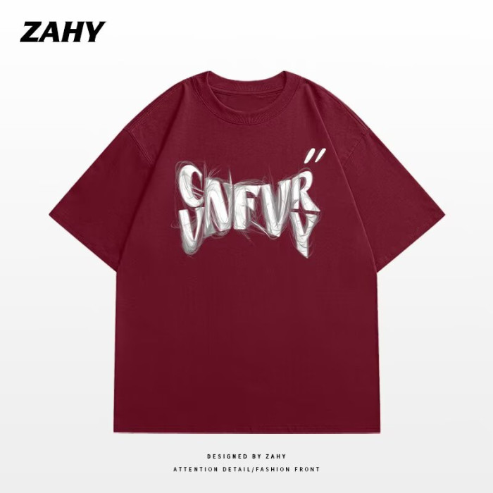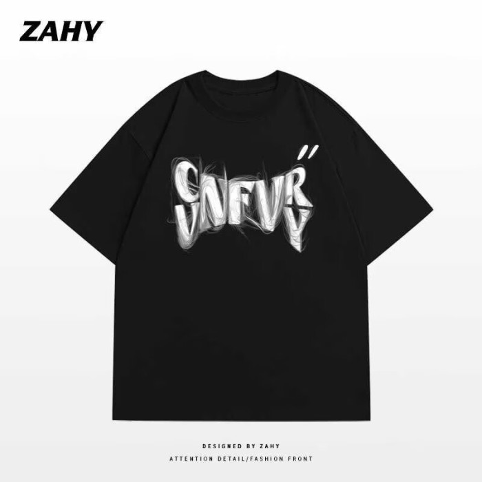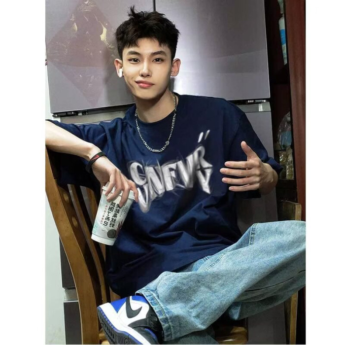 新款夏季男T恤簡約休閒百搭時尚印花顯瘦短袖寬松