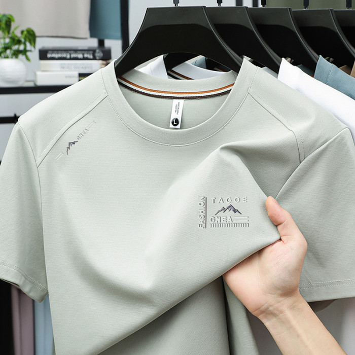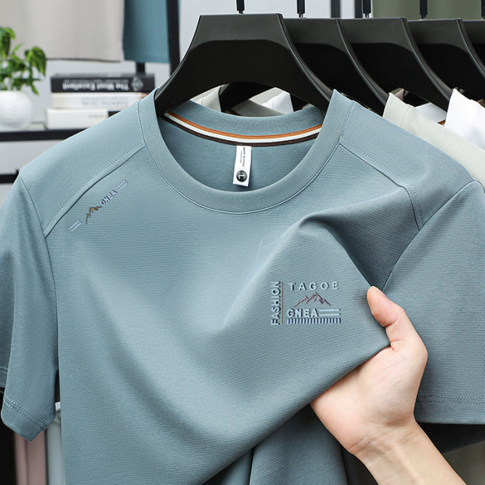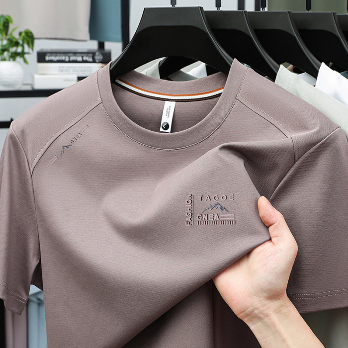 2025新款夏季吸汗透氣圓領男士短袖t恤純色高檔休閒半袖男T恤衫