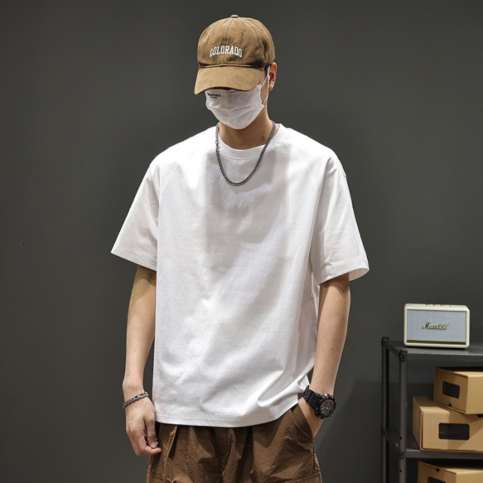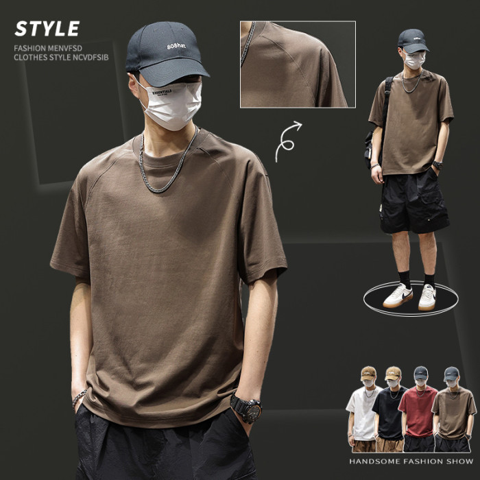 美式純色重磅短袖男t恤男款2025夏季新款酒紅色寬松上衣t恤男生