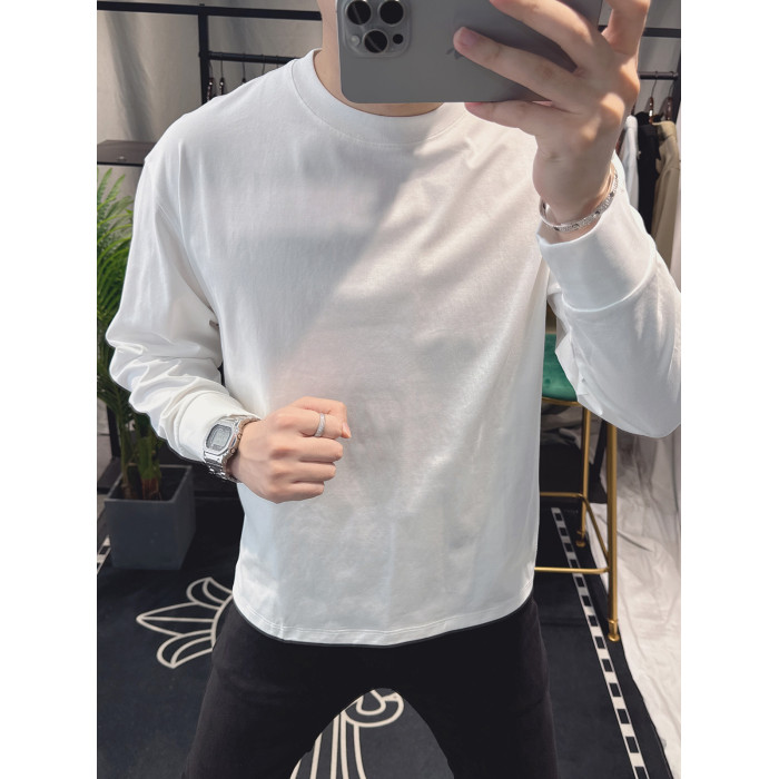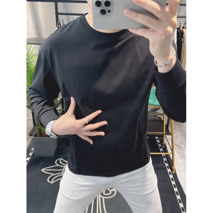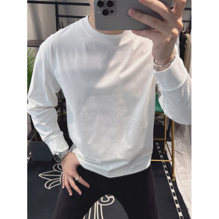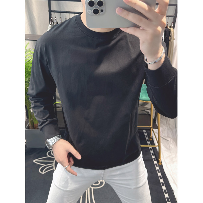 美式長袖男T恤2025春秋款潮流純色高級歐貨上衣男士歐洲站打底衫