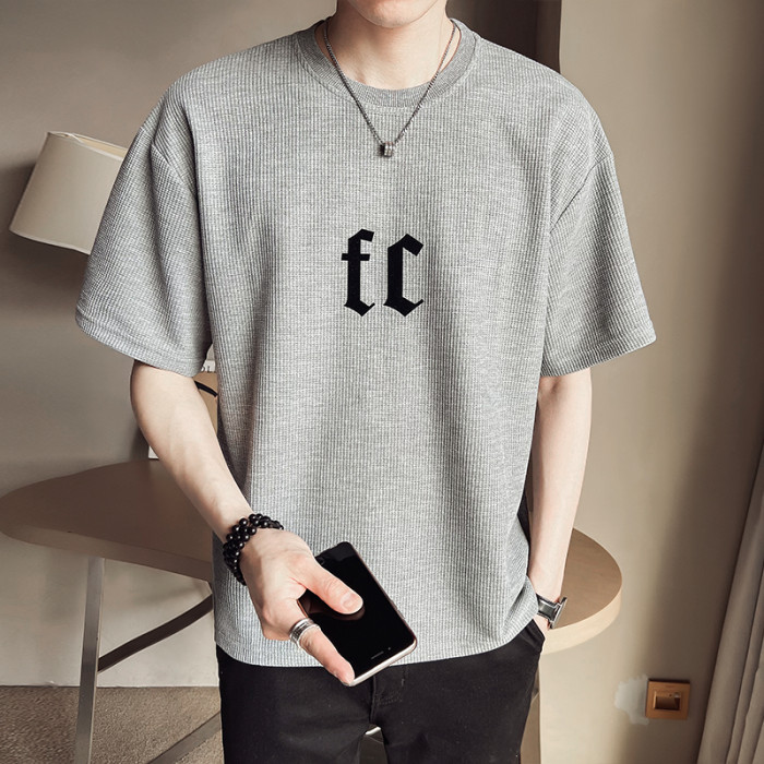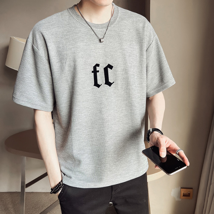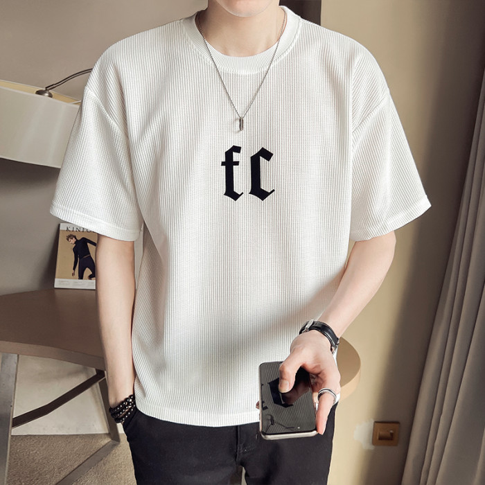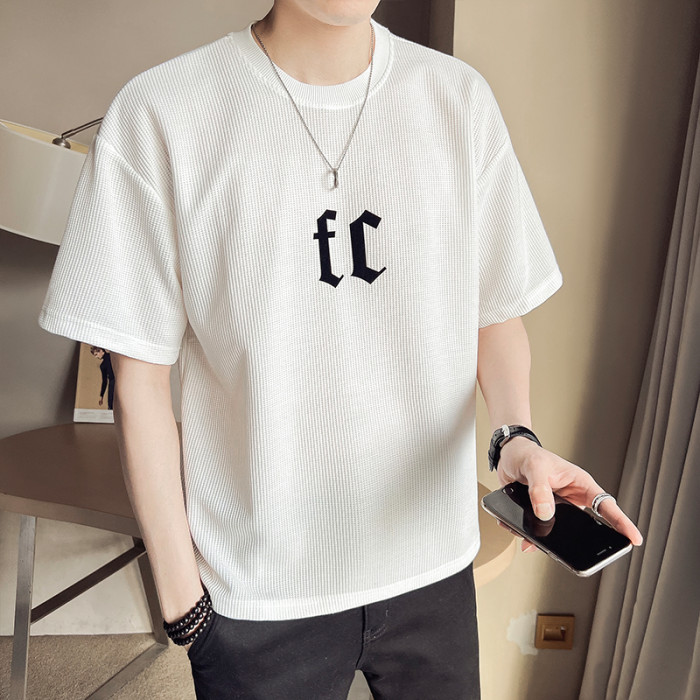 華夫格短袖男士寬松2025新款潮牌潮流冰絲體T恤夏季薄款半袖男t恤