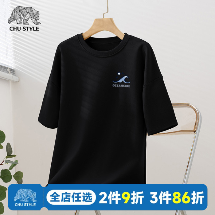 短袖男t恤夏季青少年純棉黑色寬松半截袖2025新款學生極簡風體恤C