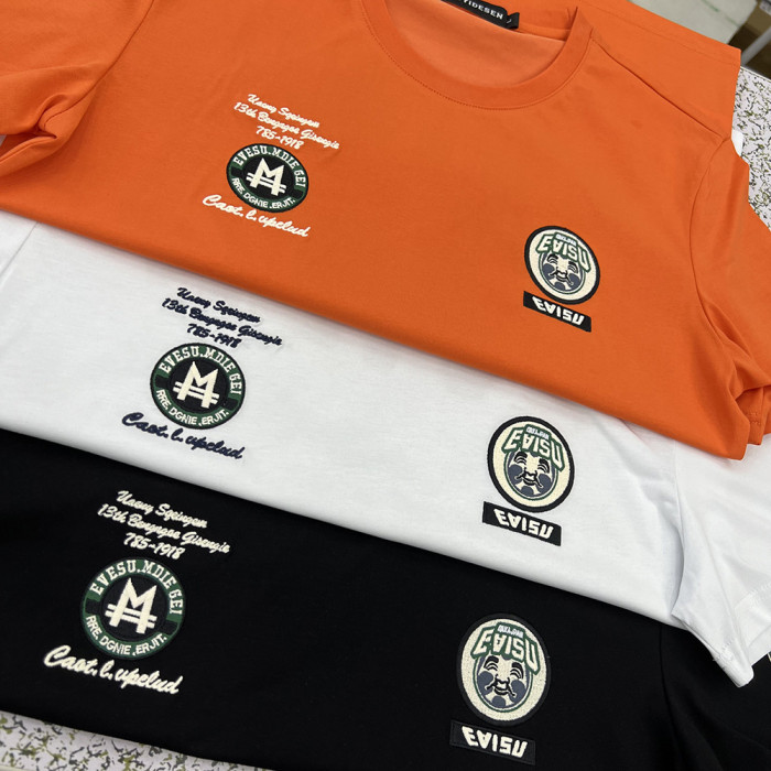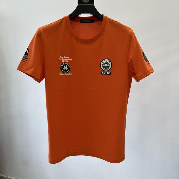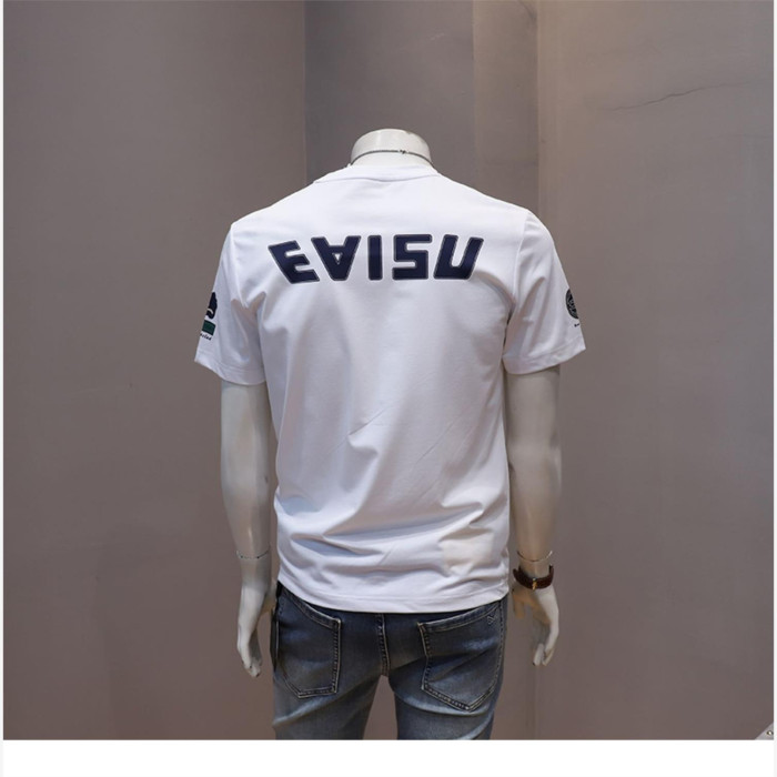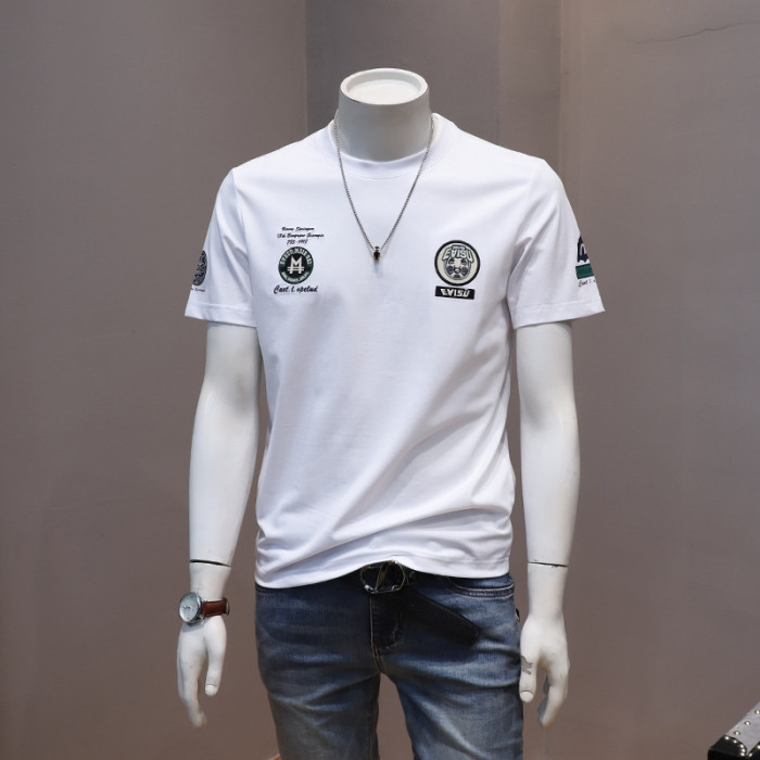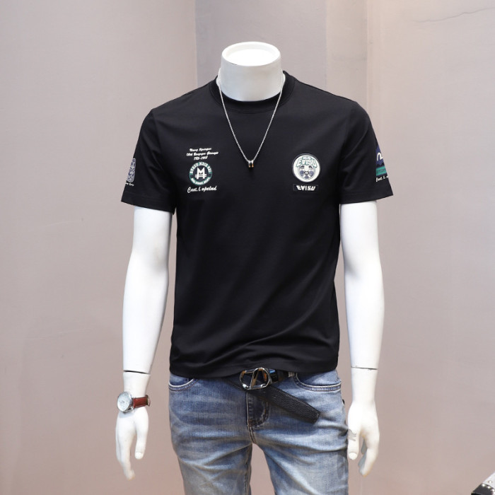 夏季男士刺綉短袖t恤衫2025男青年圓領休閒半袖絲光棉上衣男T恤潮