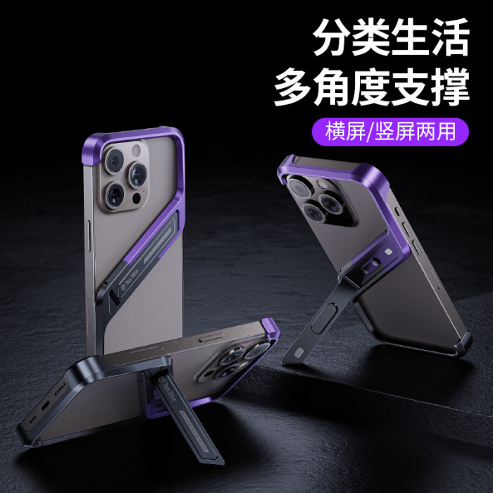 適用蘋果15Pro max手機殼蘋果14散熱金屬S型無邊框T支架殼ip16pro