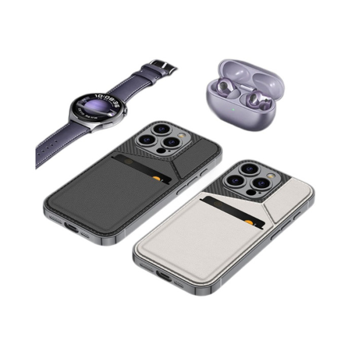 適用於iPhone16素皮手機殼 蘋果16Pro卡包保護套商務電鍍旋翼卡包