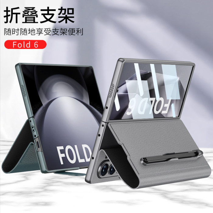 適用三星Z fold6手機殼商務筆槽摺疊螢幕防摔翻蓋皮套殼膜一體筆槽