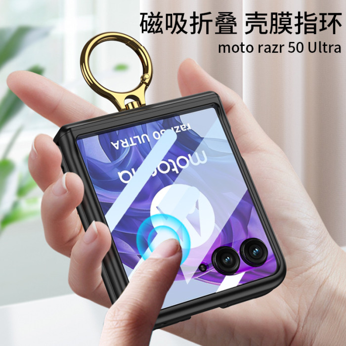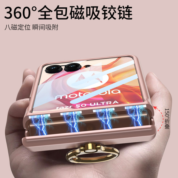 適用Moto razr50ultra手機殼razr50純色噴油PC磁吸全包指環支架殼