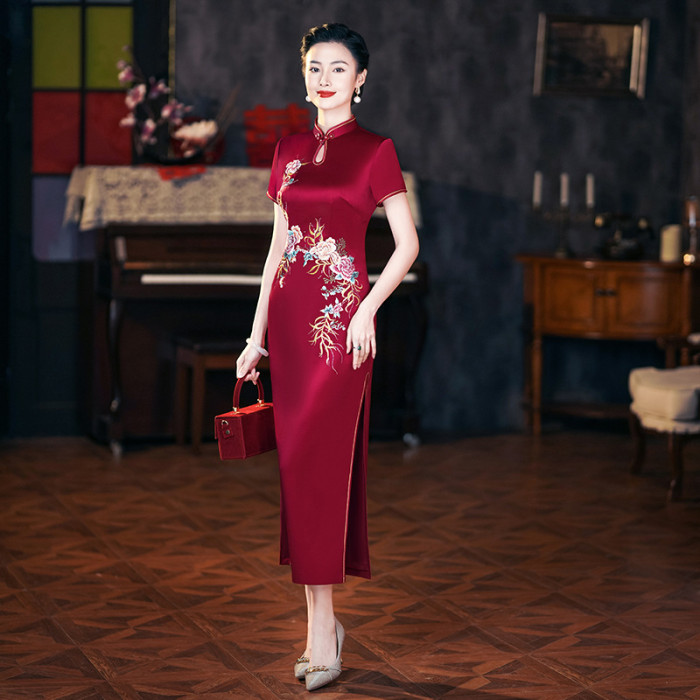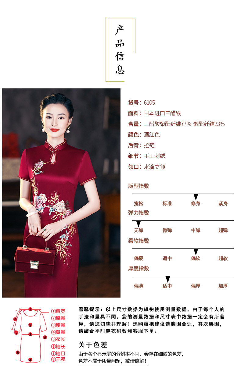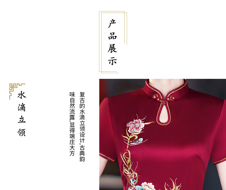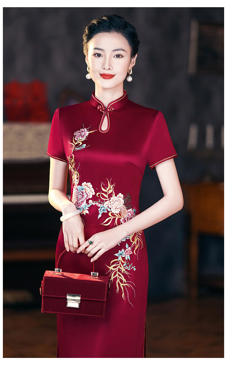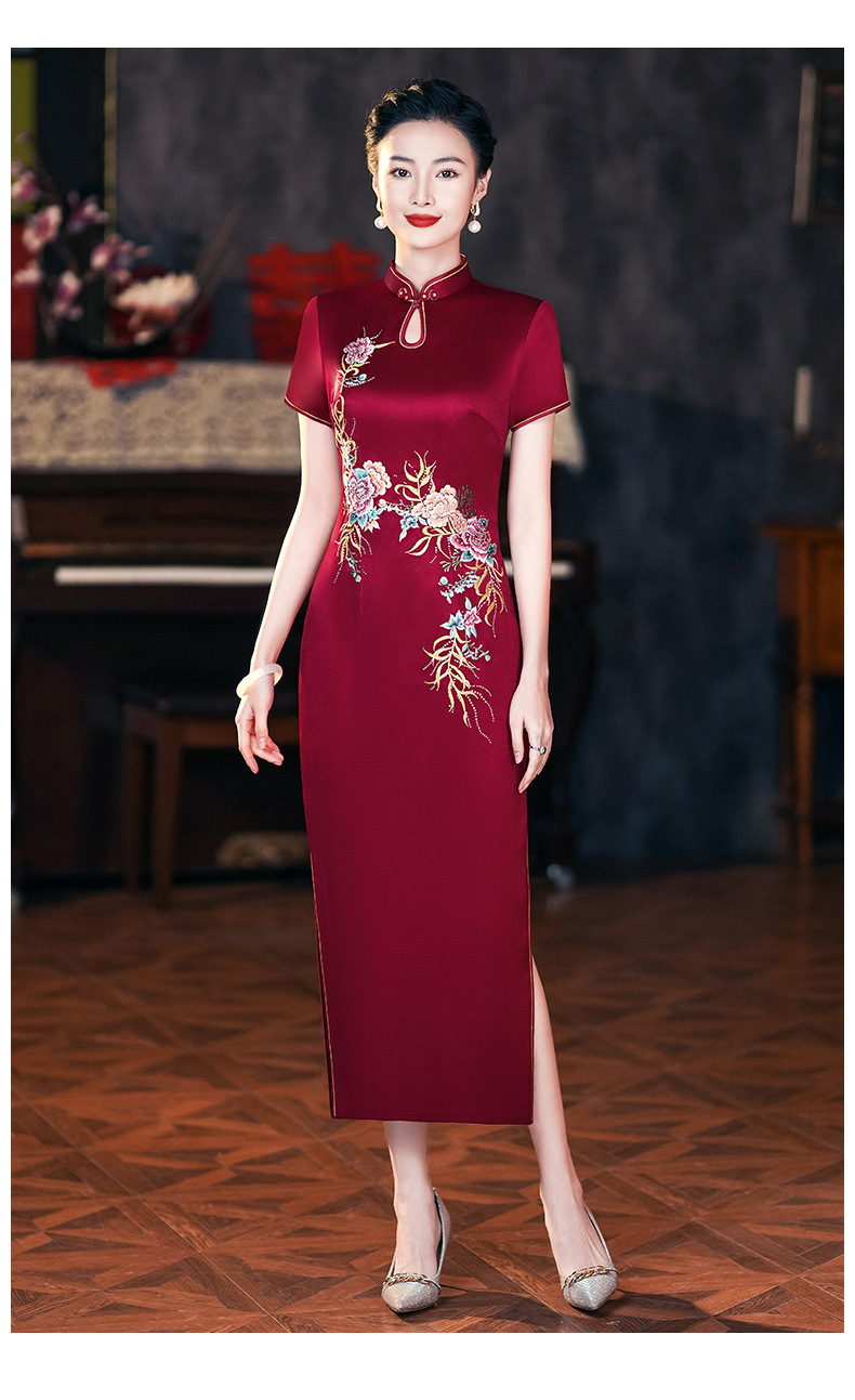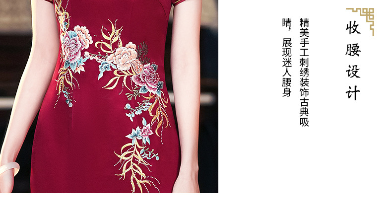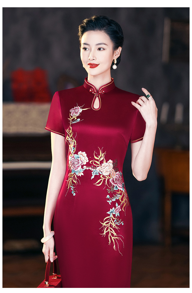年輕喜婆婆婚宴禮服夏季醋酸緞刺綉結婚媽媽旗袍高貴6105