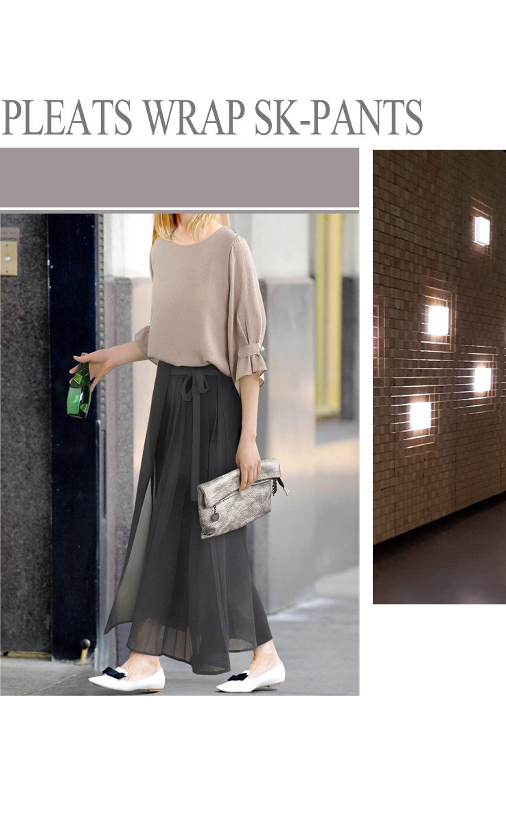 2023年夏季女士新款壓褶雪紡長褲大碼松緊腰休閒褲褲裙