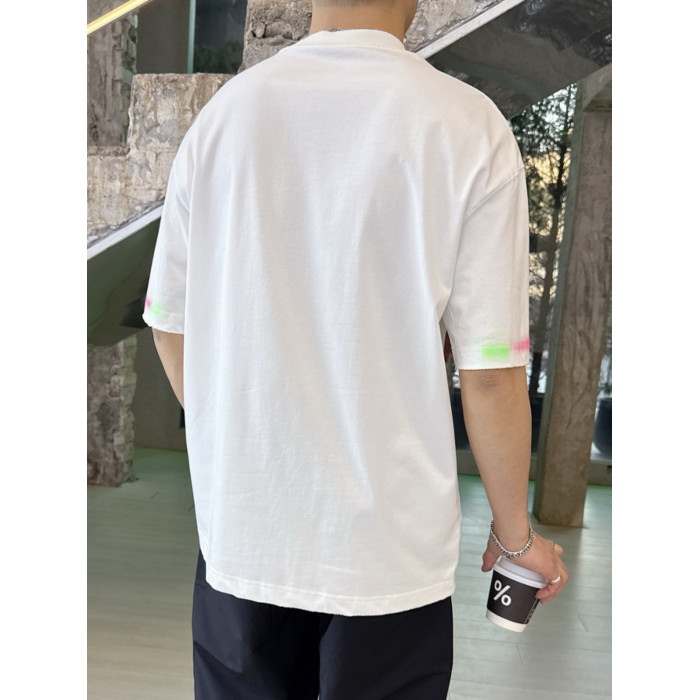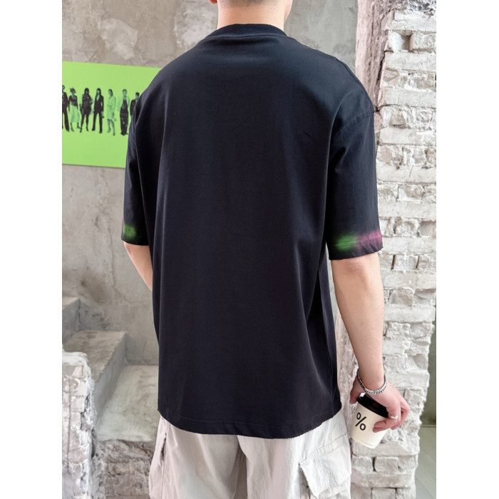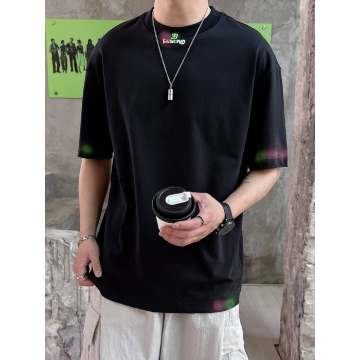 2025帥氣百搭簡約圓領舒適新款直筒純棉紋印花男裝休閒重磅男T恤
