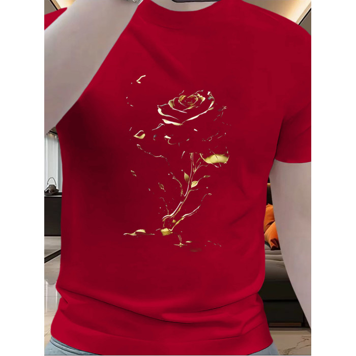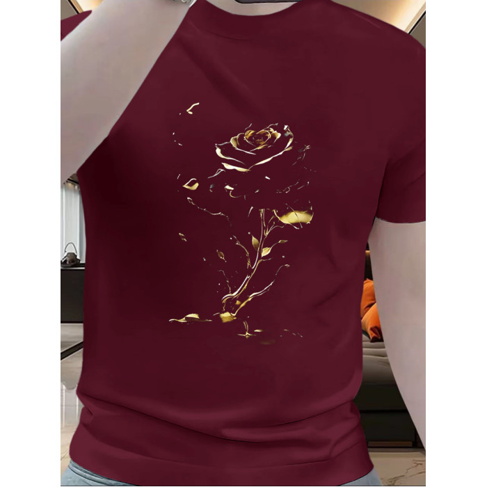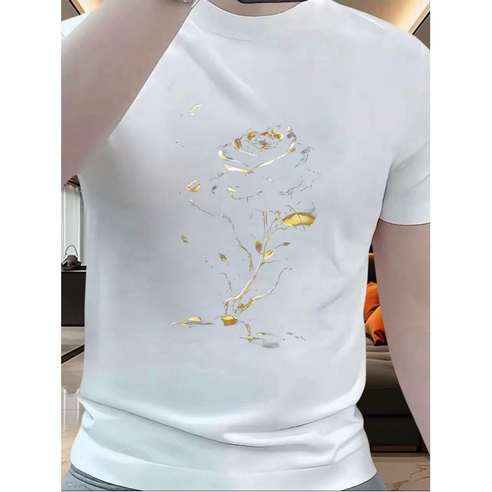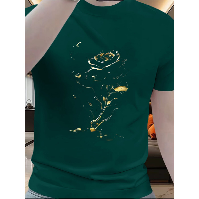 美式潮牌潮流短袖男T恤玫瑰印花國風時尚休閒純棉夏季半袖百搭