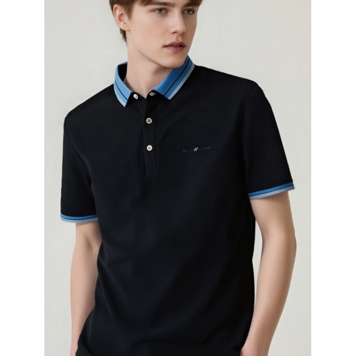 MALLARD棉質男士夏季撞色翻領polo衫雅痞休閒透氣短袖合身男T恤