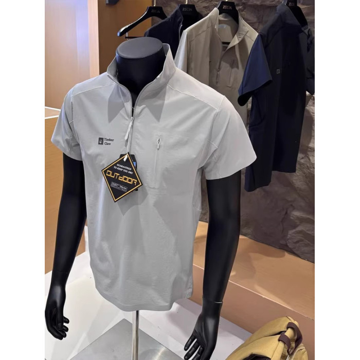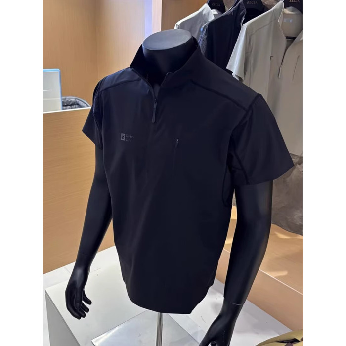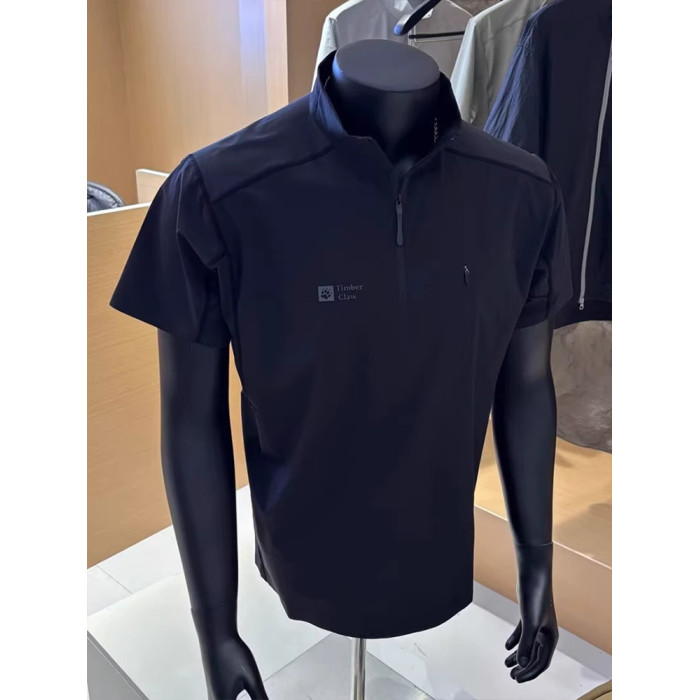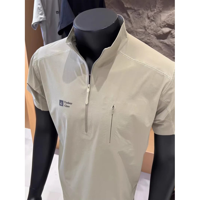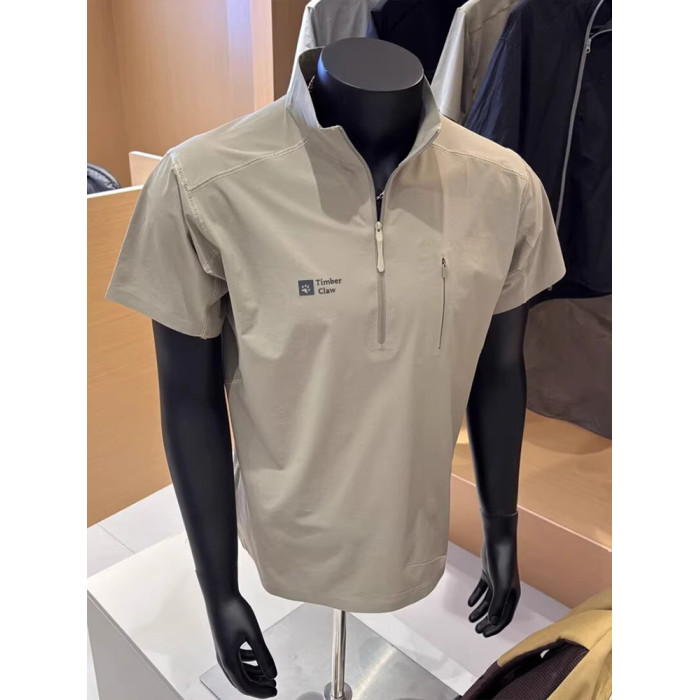 WASSUP WDSU大碼夏季戶外登山速乾短袖男t恤半拉鍊立領正肩五分袖
