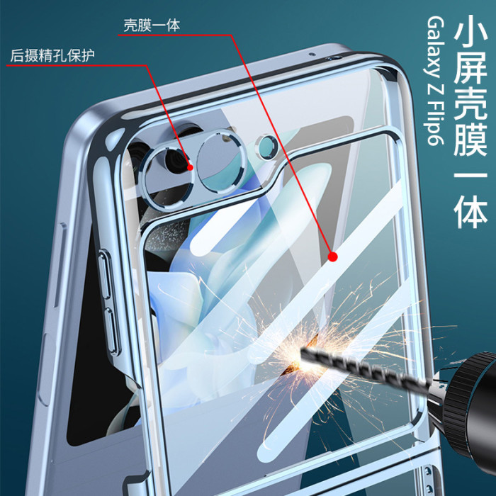 適用三星flip6手機殼FLIP6摺疊螢幕電鍍透明殼膜一體輕奢超薄保護殼