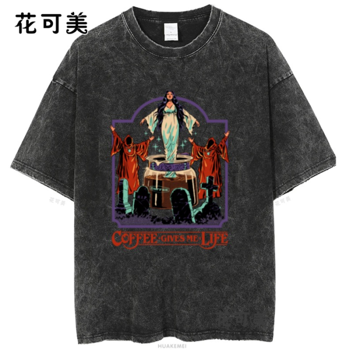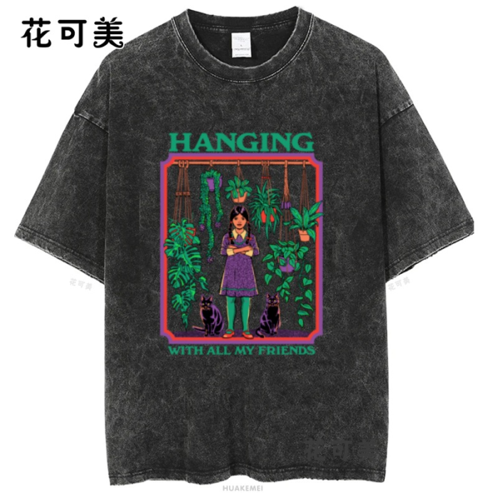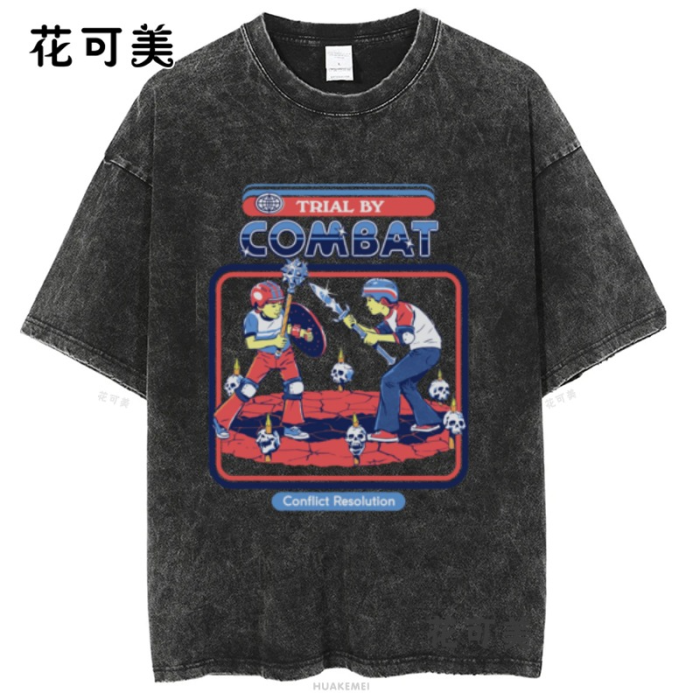 3D眼鏡卡通新款夏季歐美潮牌搞笑創意滑稽印花水洗做舊短袖男t恤