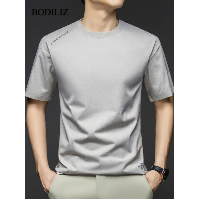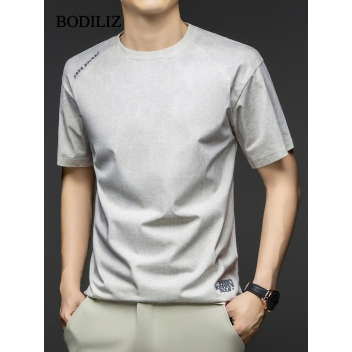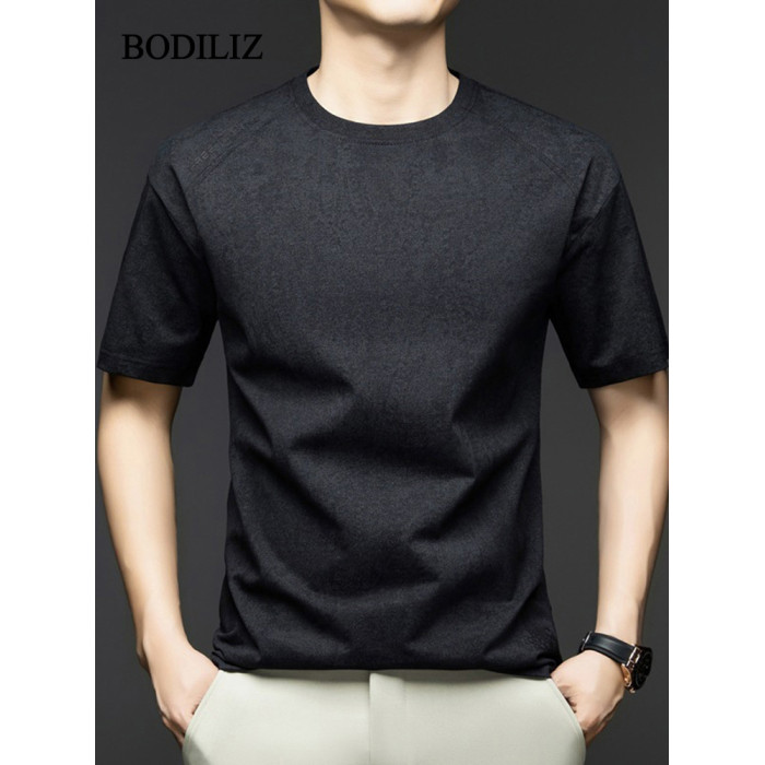 奢侈品碎花絲光棉黑色短袖t恤圓領夏款薄款青年寬松抗皺涼感體恤
