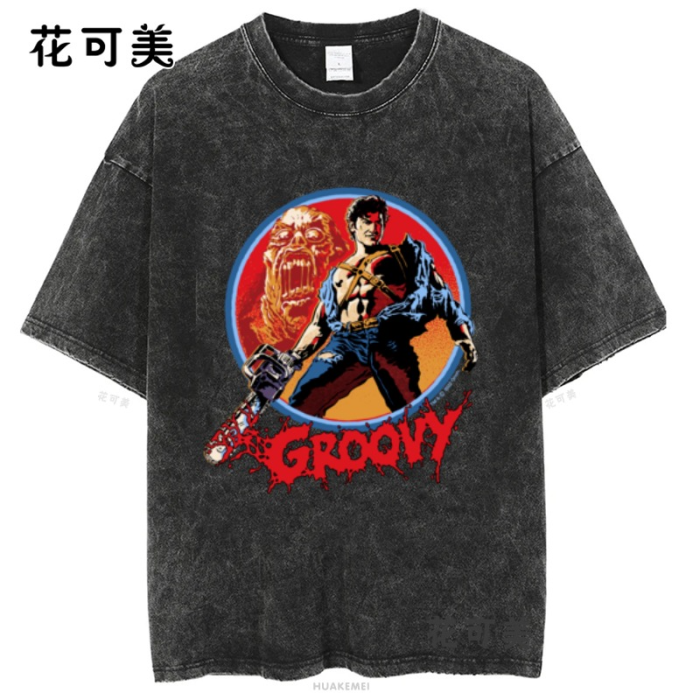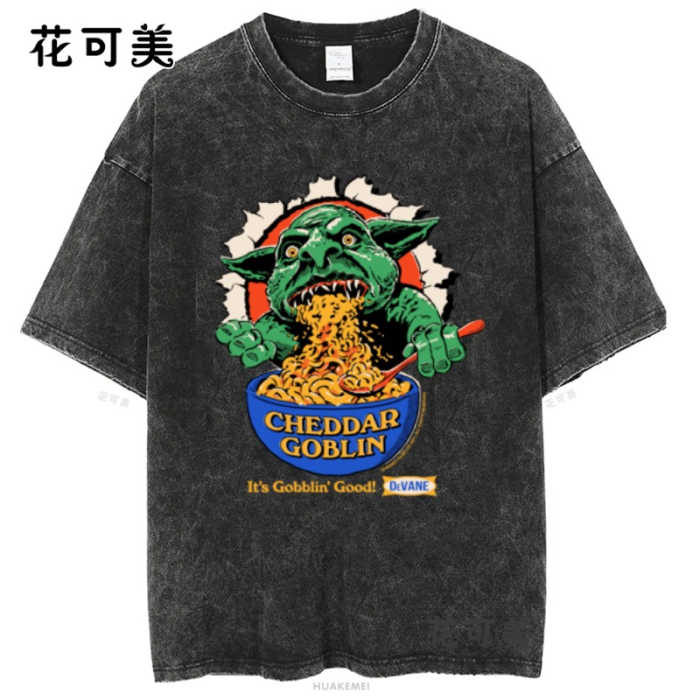 歐美潮牌搞笑創意滑稽卡通印花水洗做舊短袖男t恤
