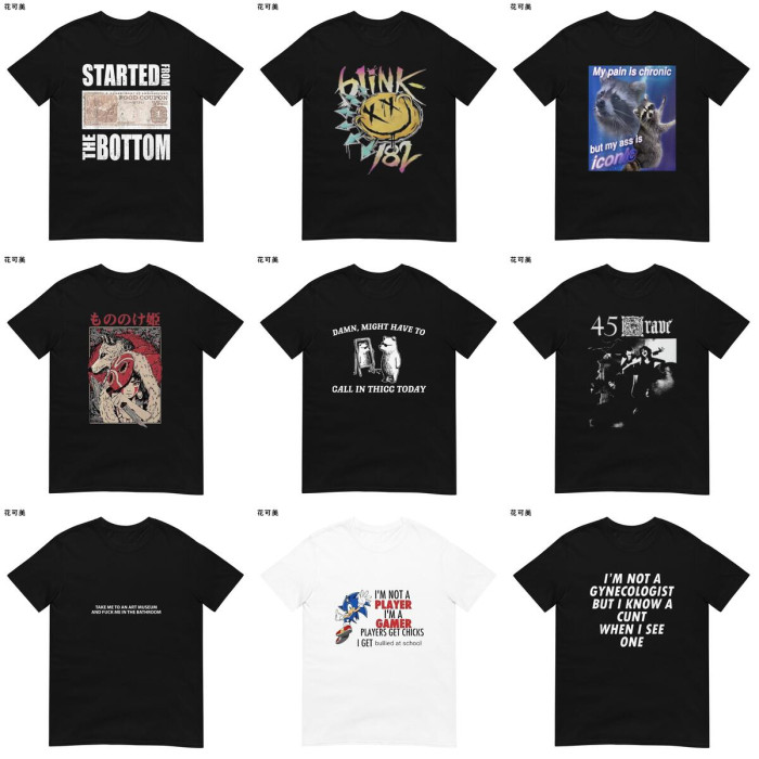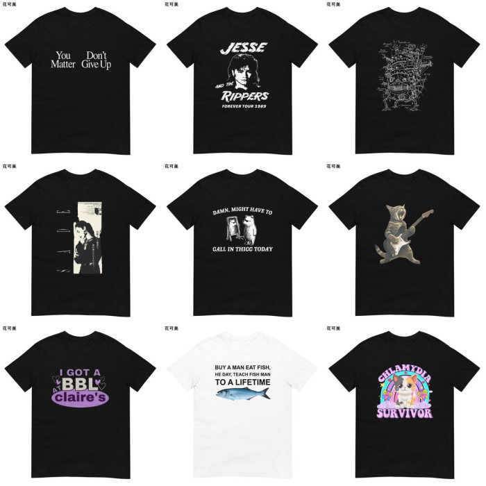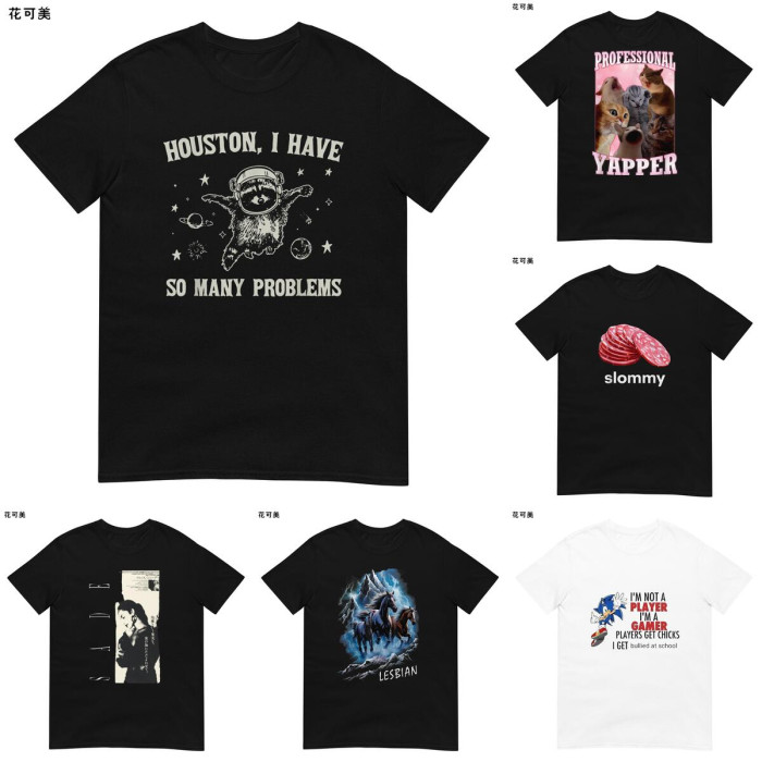 花可美2025夏季新款美式復古潮牌男t恤純棉袖寬松短袖T恤情侶上衣