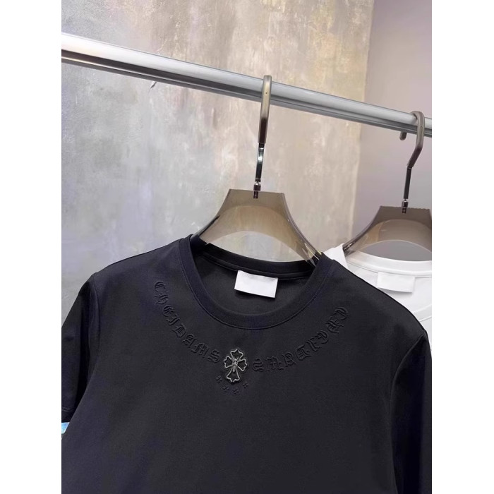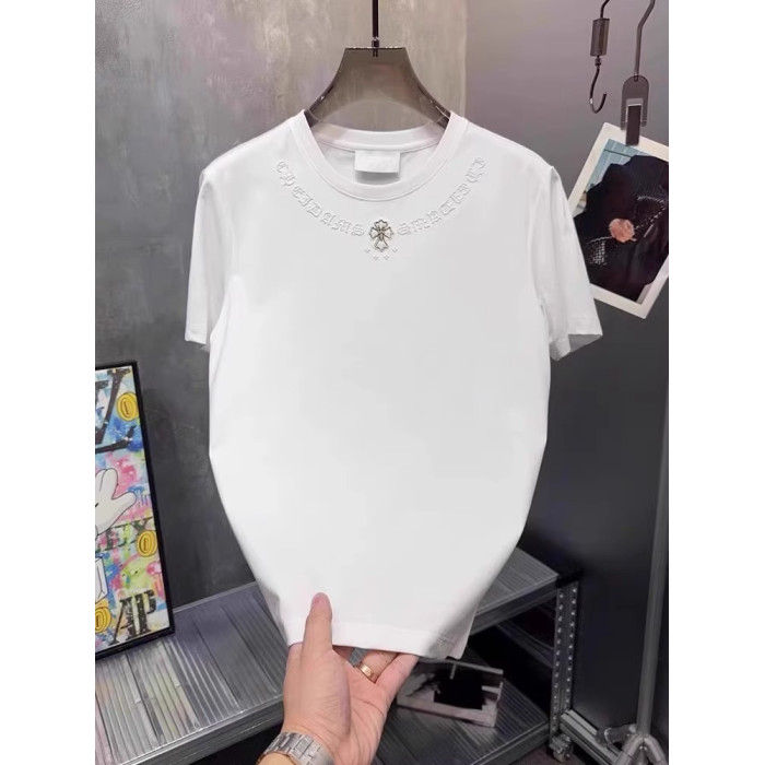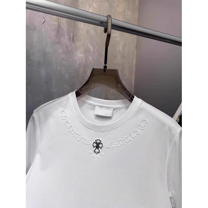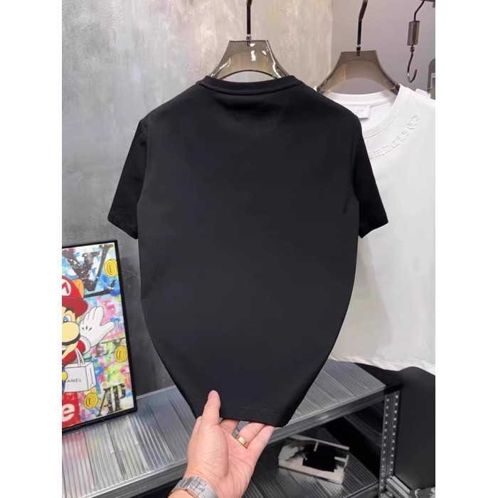 歐貨夏季新款輕奢圓領小板型棉質短袖男士百搭潮流ins刺綉男T恤潮
