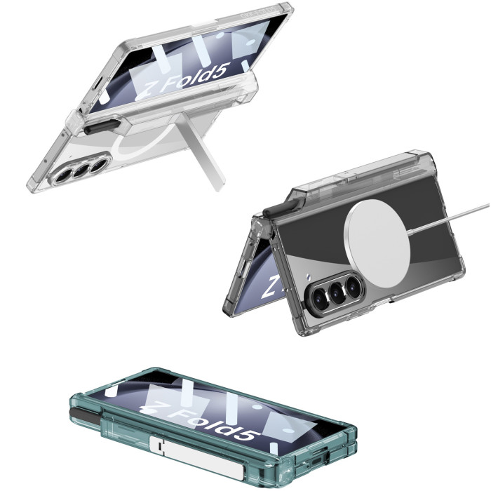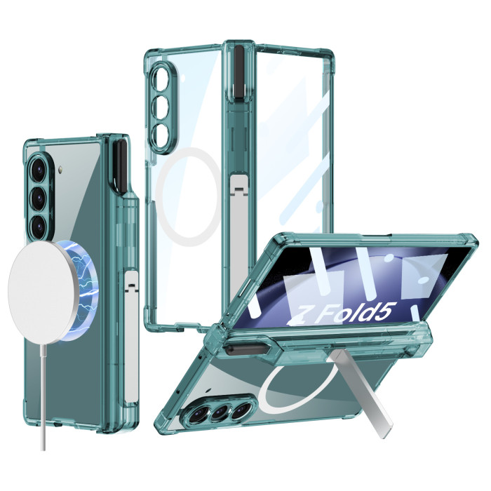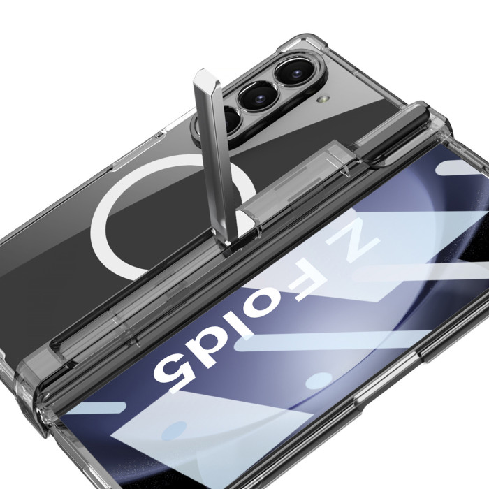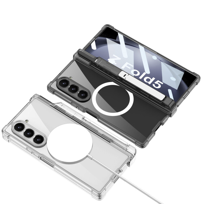 適用三星Z Fold5手機殼無線充fold6透明氣囊中軸全包筆筒支架