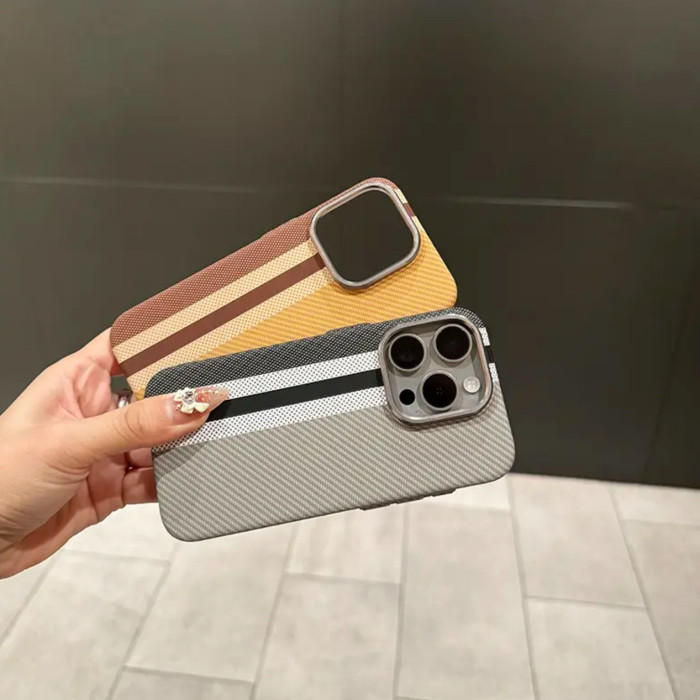 適用iPhone16凱夫拉紋磁吸手機硬殼蘋果15碳纖維紋全包防摔商務14