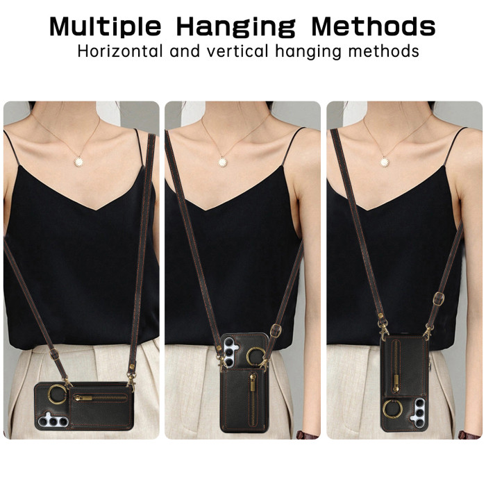 適用三星A55斜背插卡皮套A35三折指環扣A15拉鍊卡包A25支架手機殼