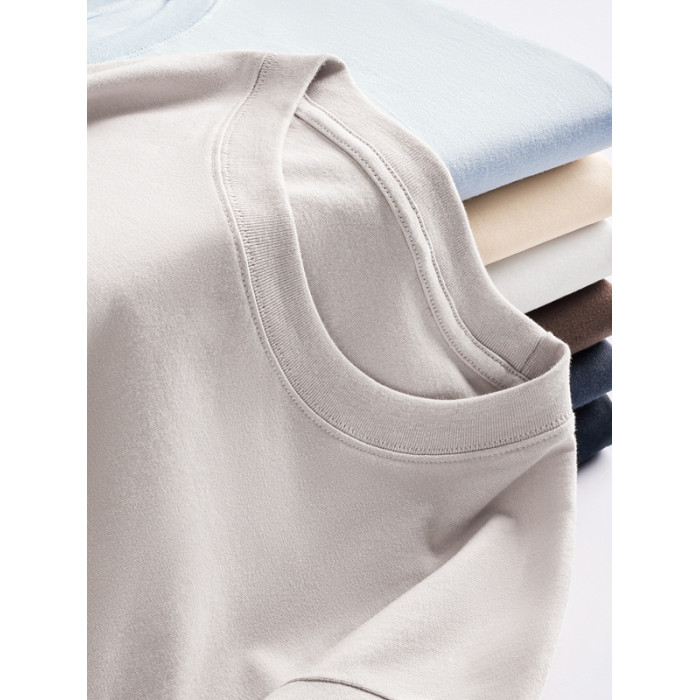 日系簡約純棉230g純色短袖男夏季新款寬松百搭休閒男t恤
