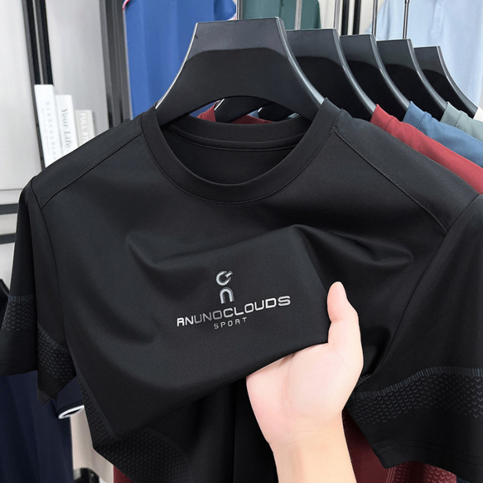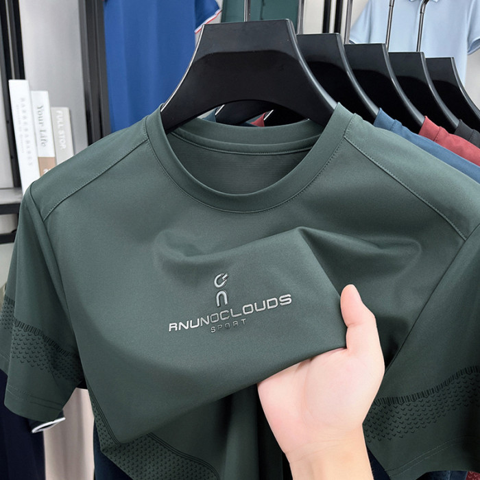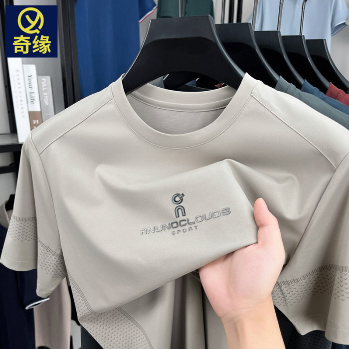 高級感桑蠶絲短袖男t恤2025夏季新款圓領印花休閒寬松薄款男士