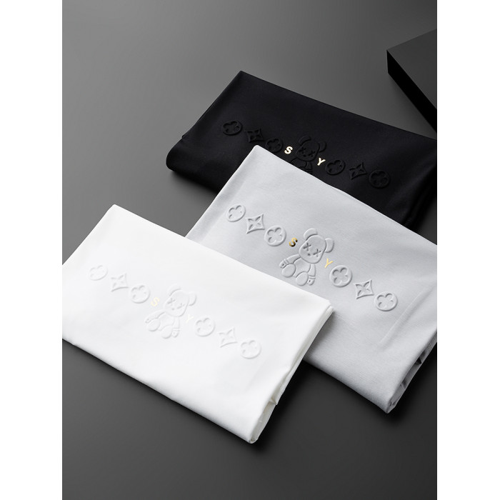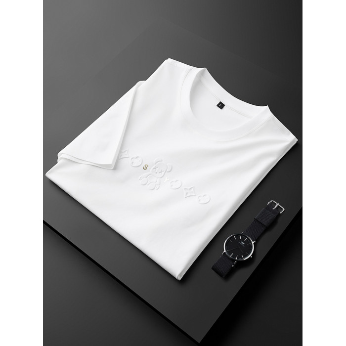 無痕新款夏季彈力修身時尚商務設計字母印花短袖男T恤白色黑色