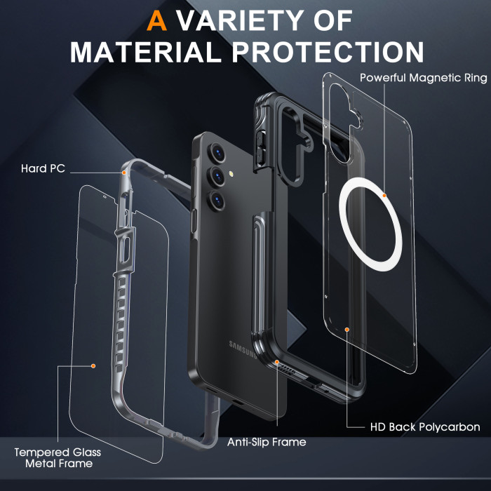 適用三星A16手機殼透明360全包防摔減震防刮花磁吸無線充電保護套