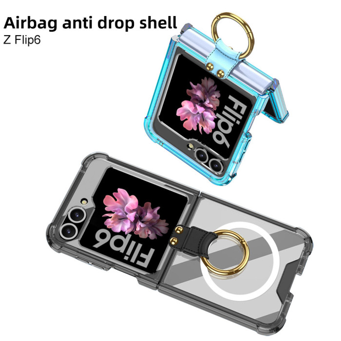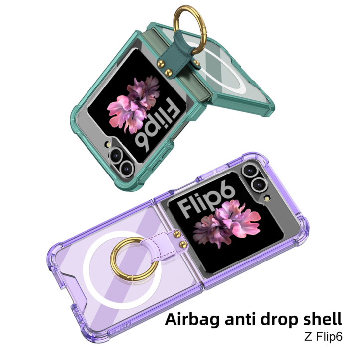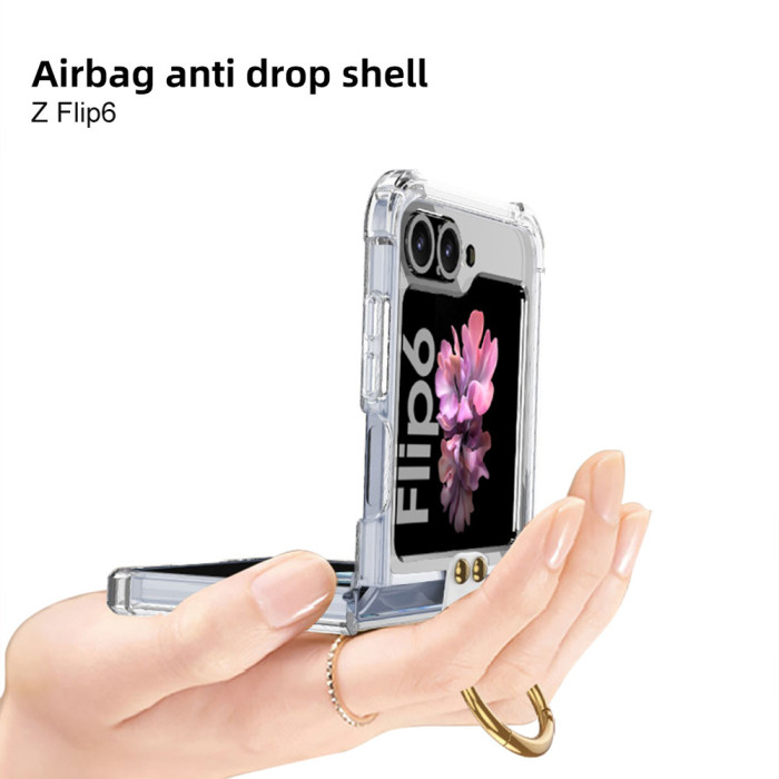 適用三星Flip6手機殼透明氣囊無線充指環flip6純色折曡手機保護套