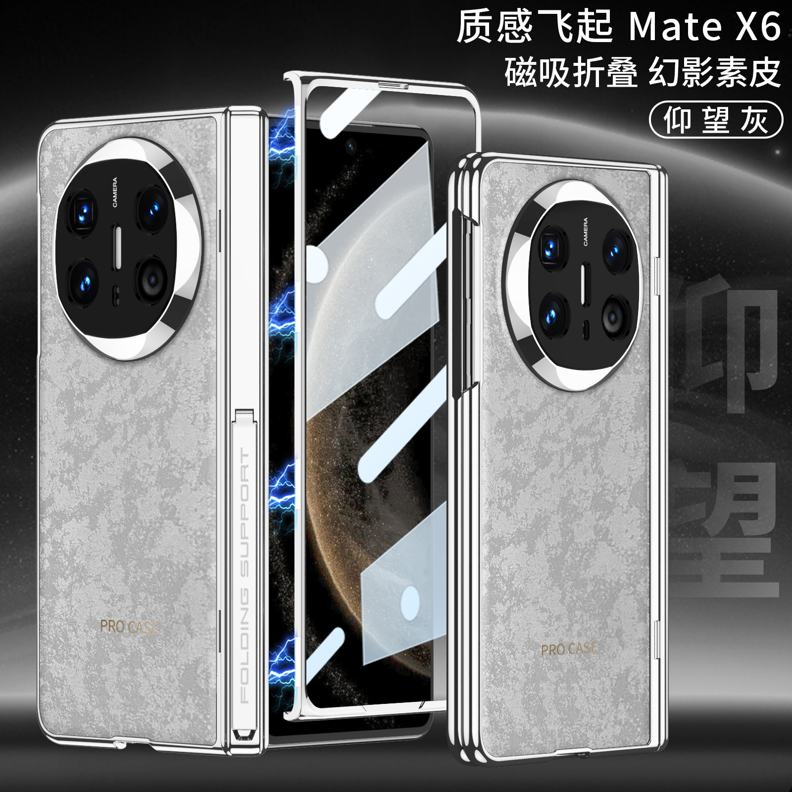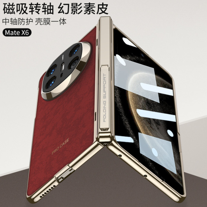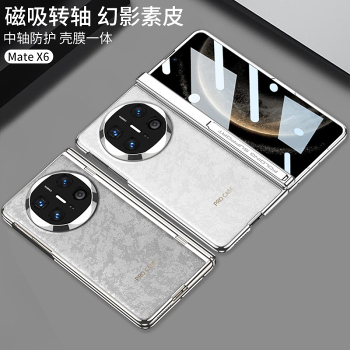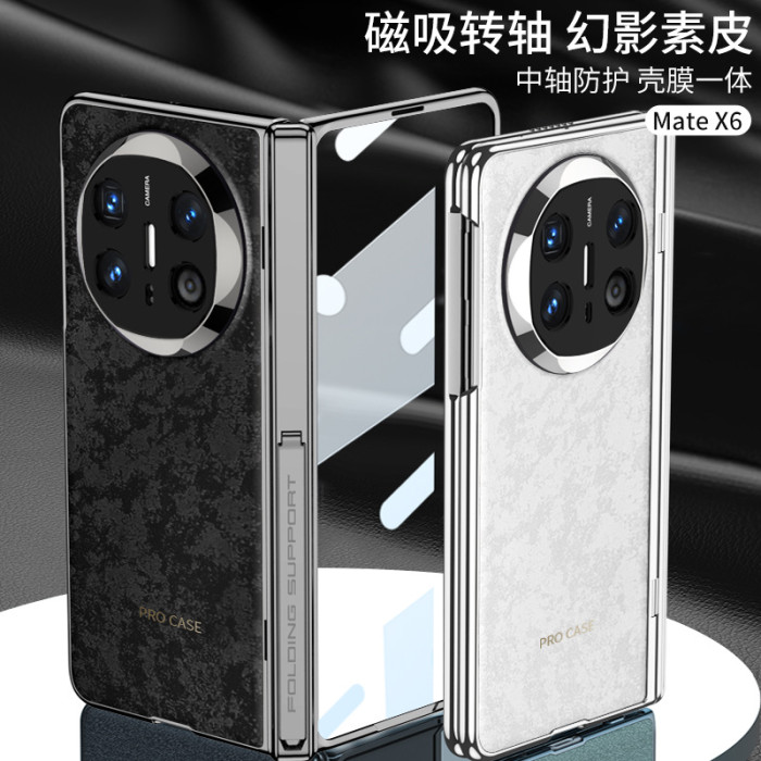 適用華爲MateX6手機殼中軸全包磁吸MateX6殼膜一體支架素皮保護套