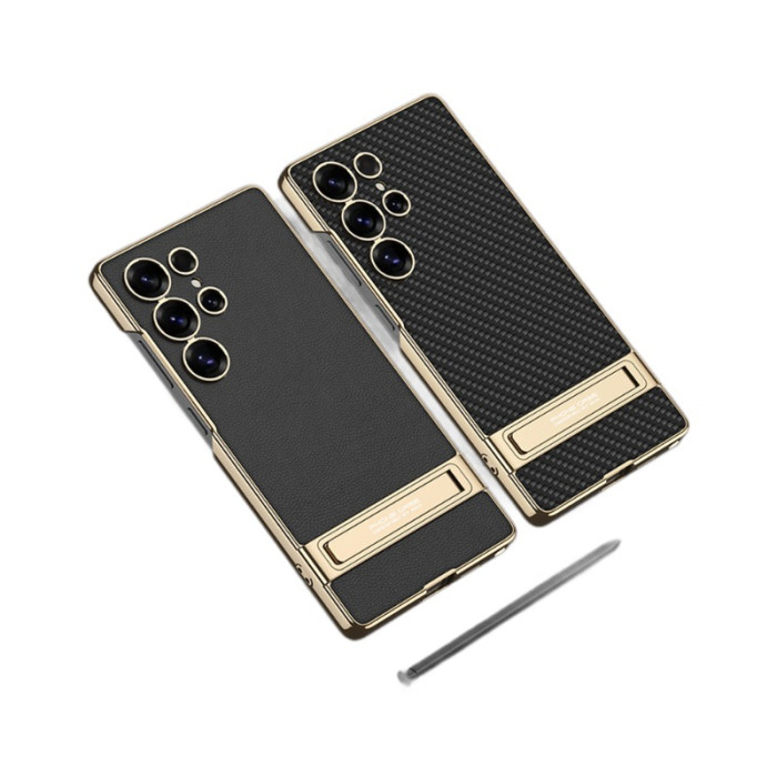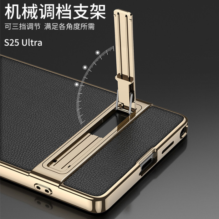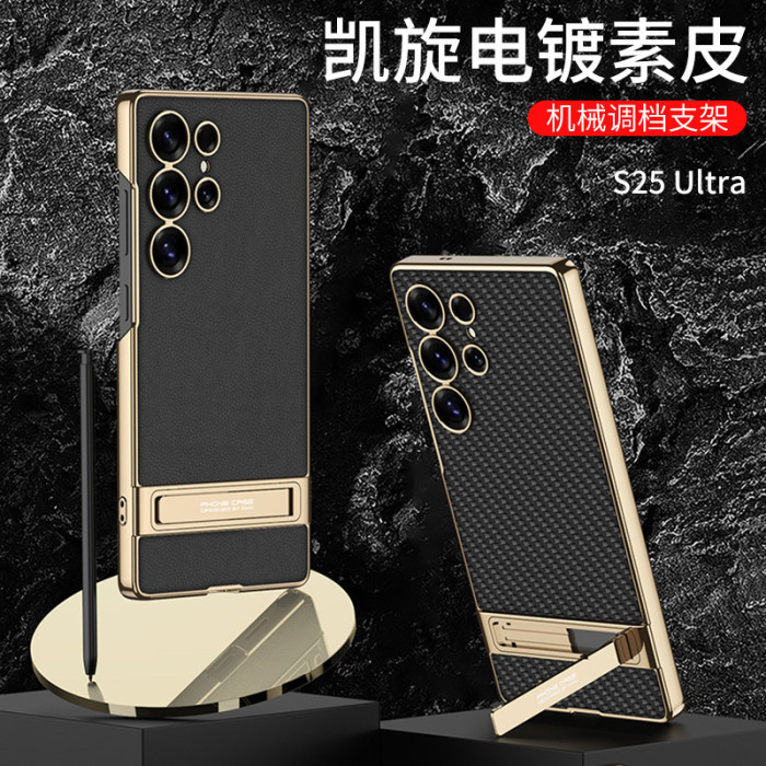 適用三星s25ultra手機殼 s25u 電鍍 素皮 凱旋支架創意保護套