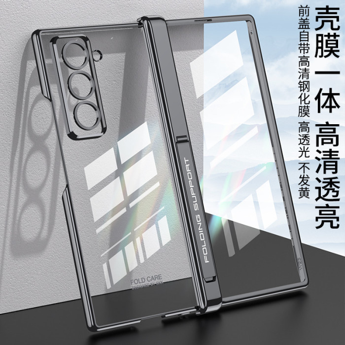 適用三星Fold6Slim磁吸手機殼電鍍W25殼膜一體側包帶支架透明簡約