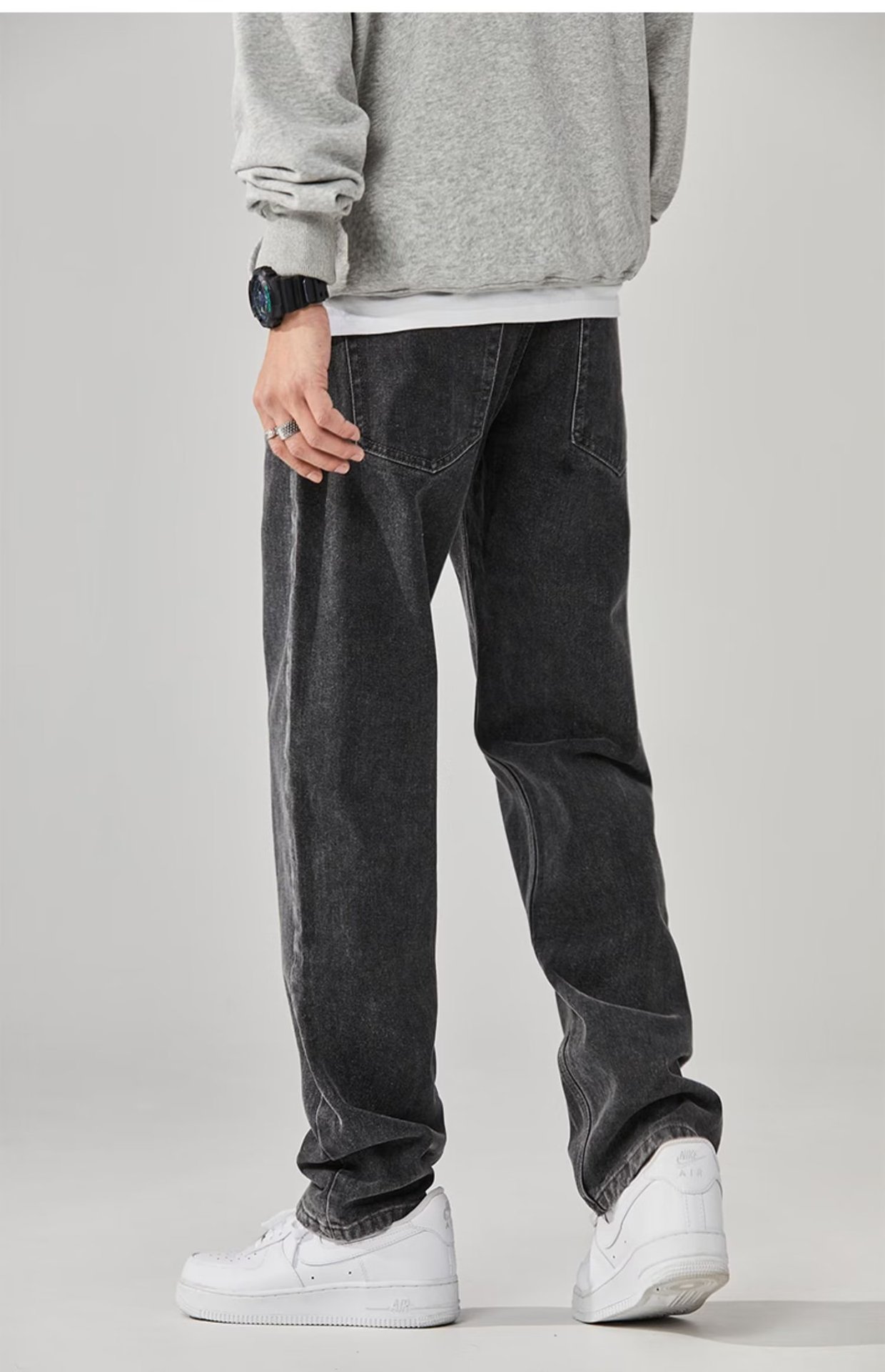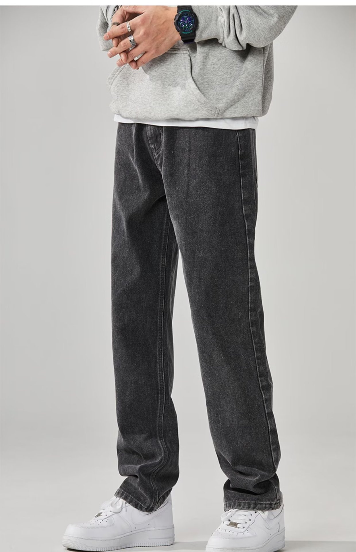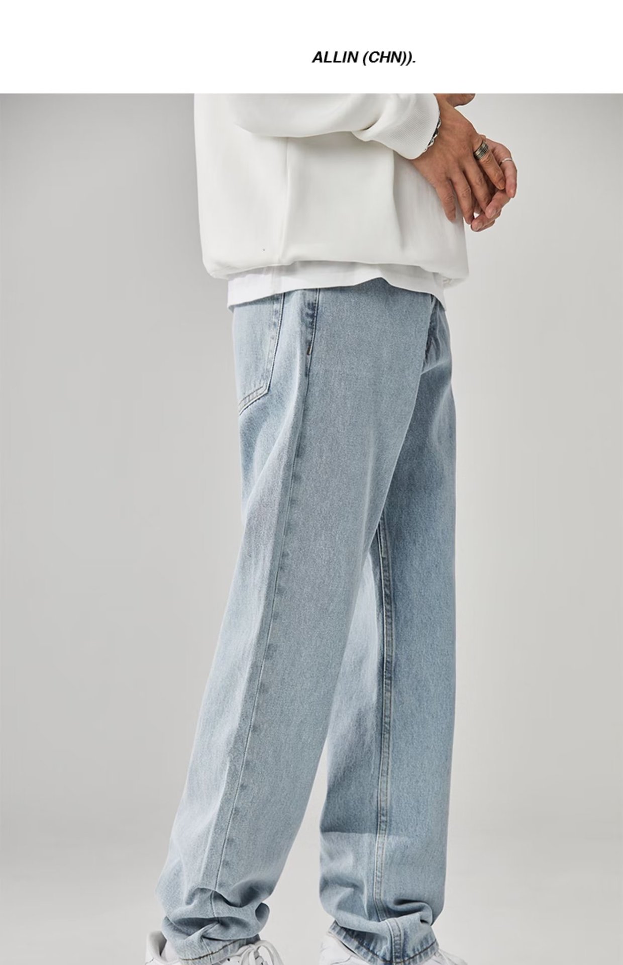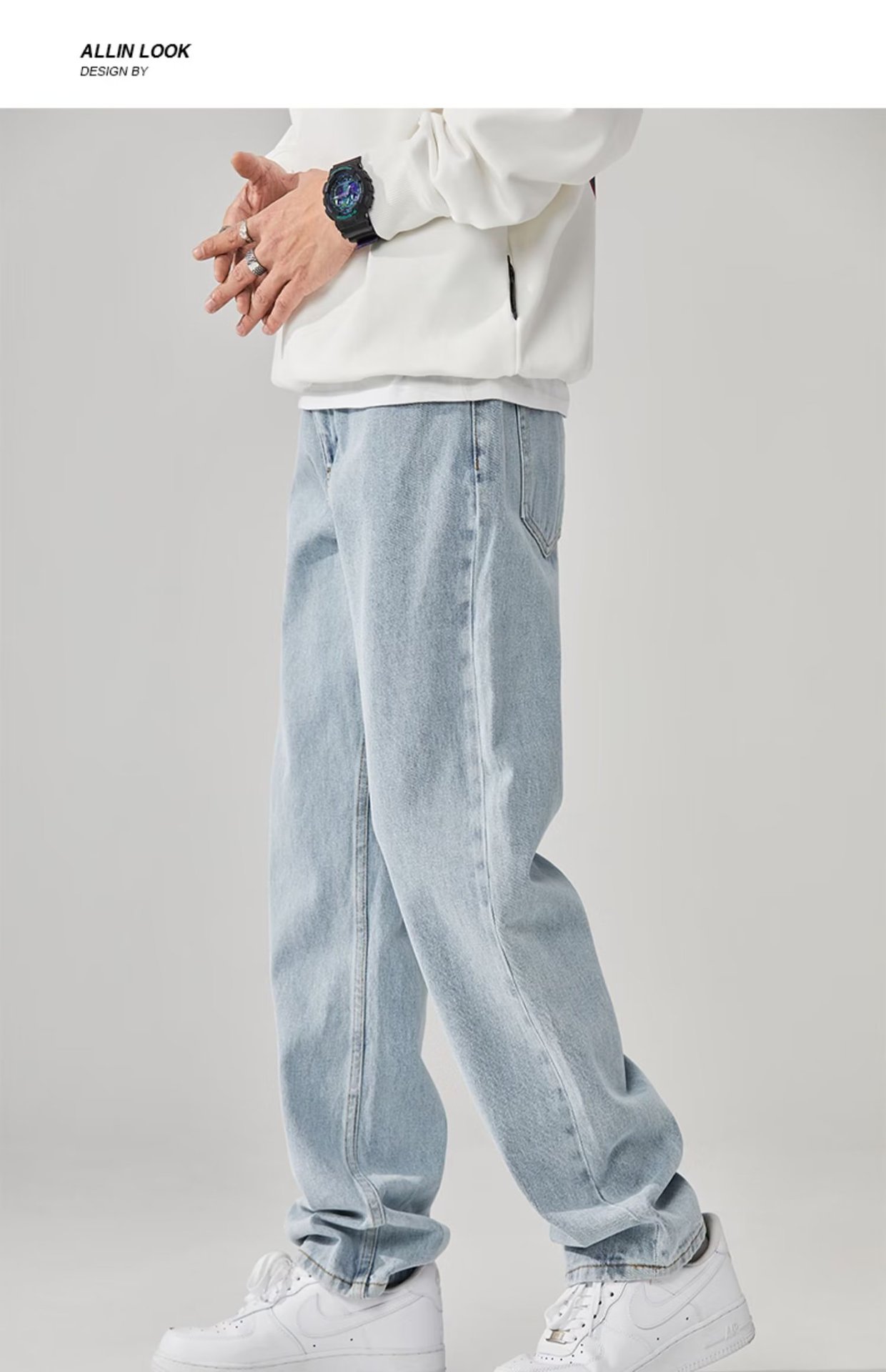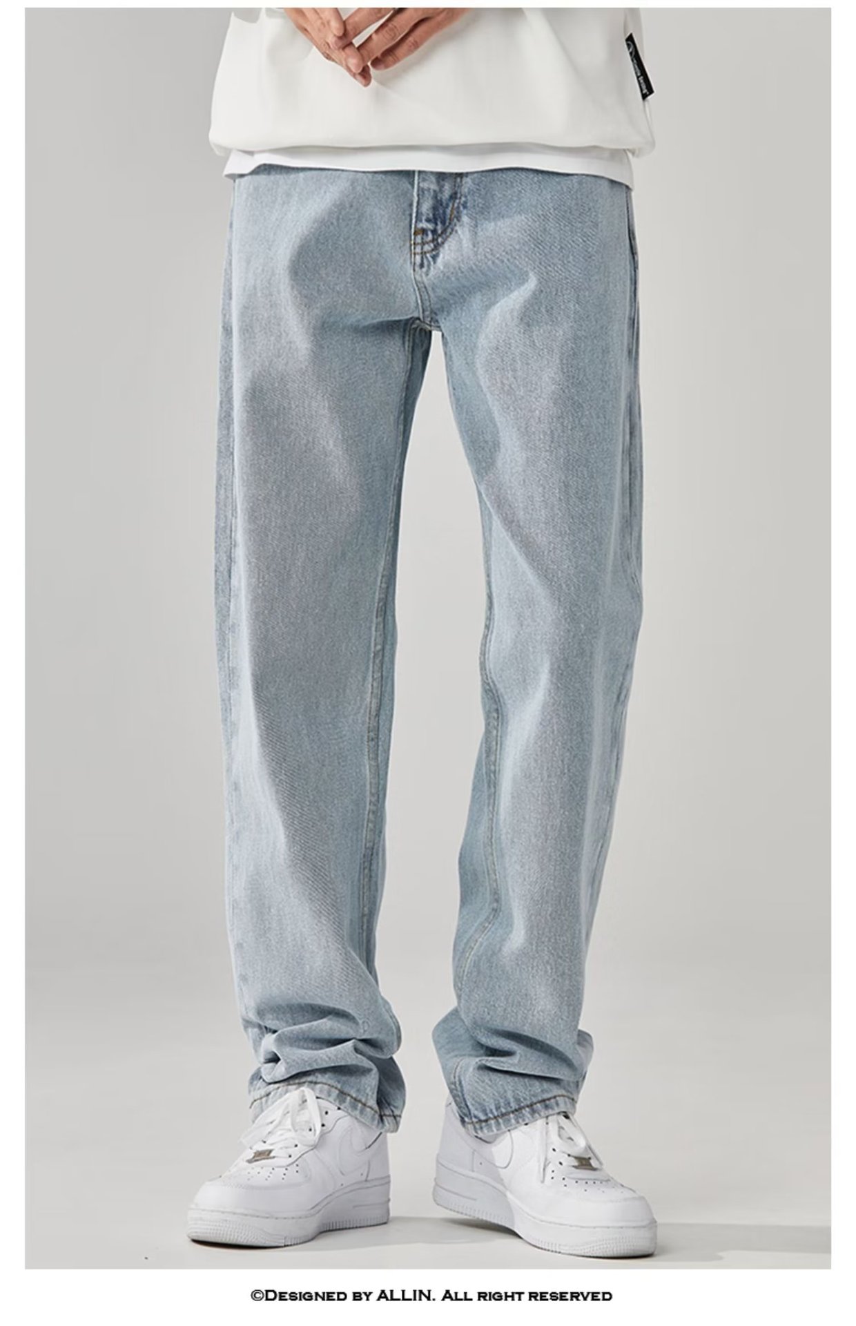 港風潮男純色新款2025個性純色牛仔褲嘻哈ins潮高街潮流痞帥長褲