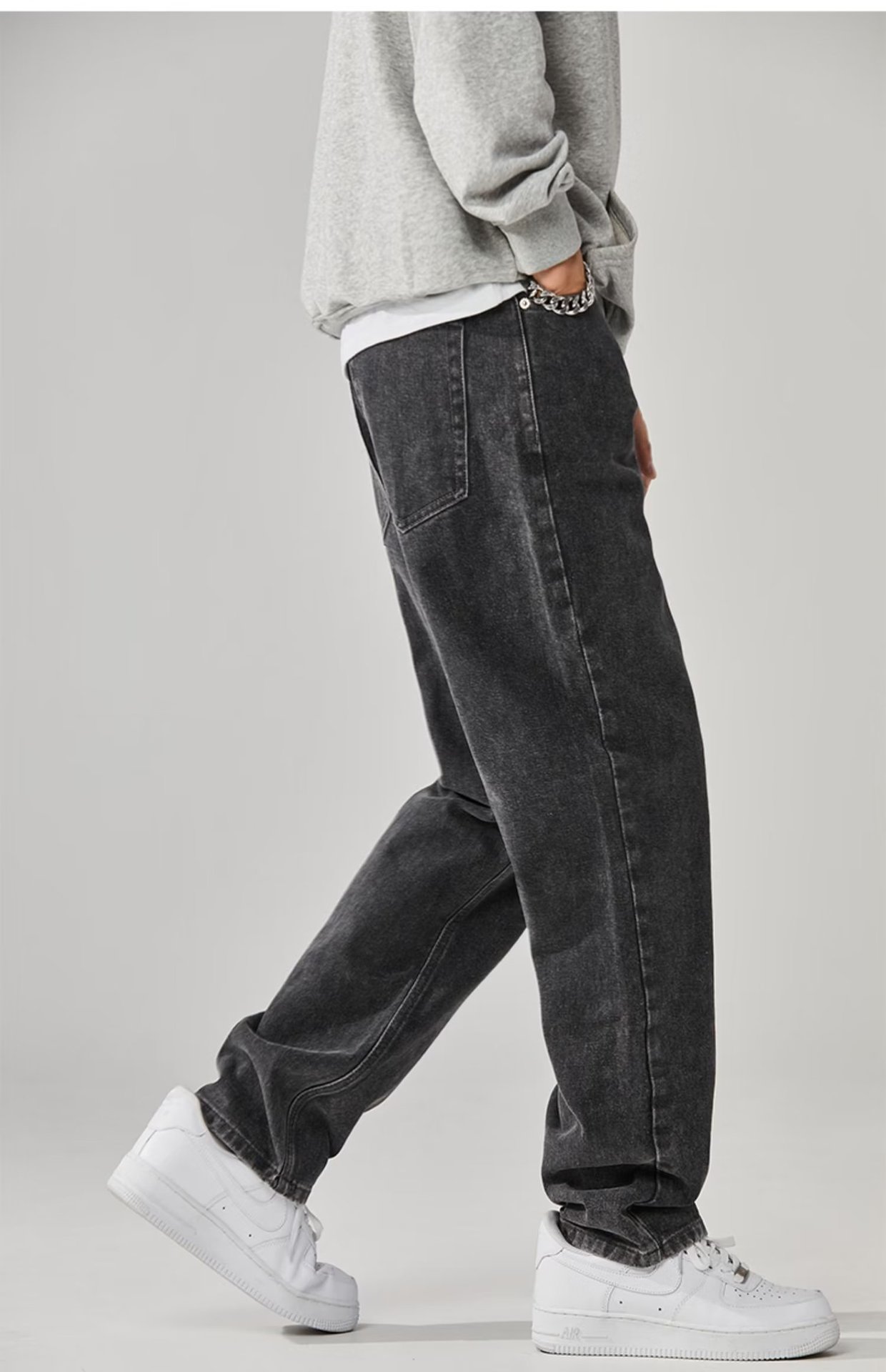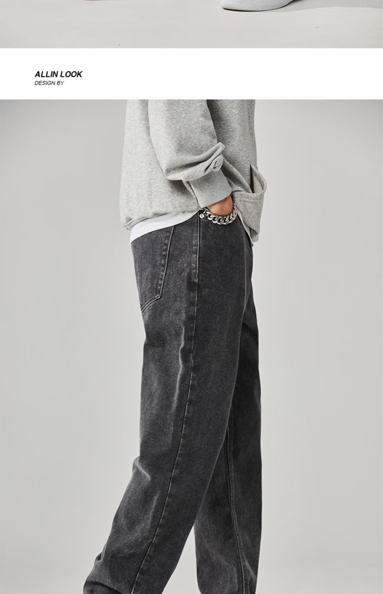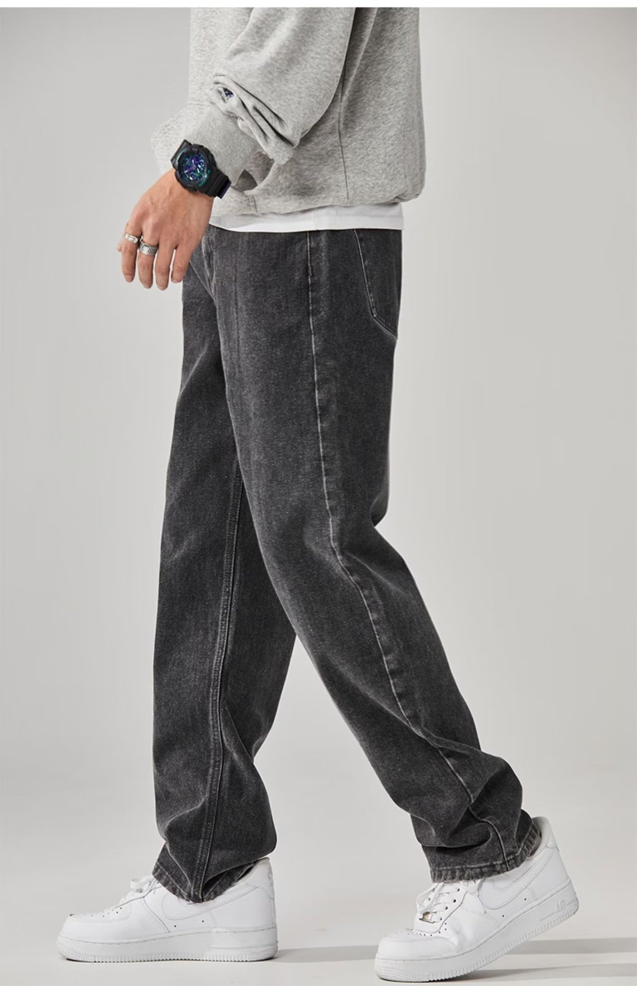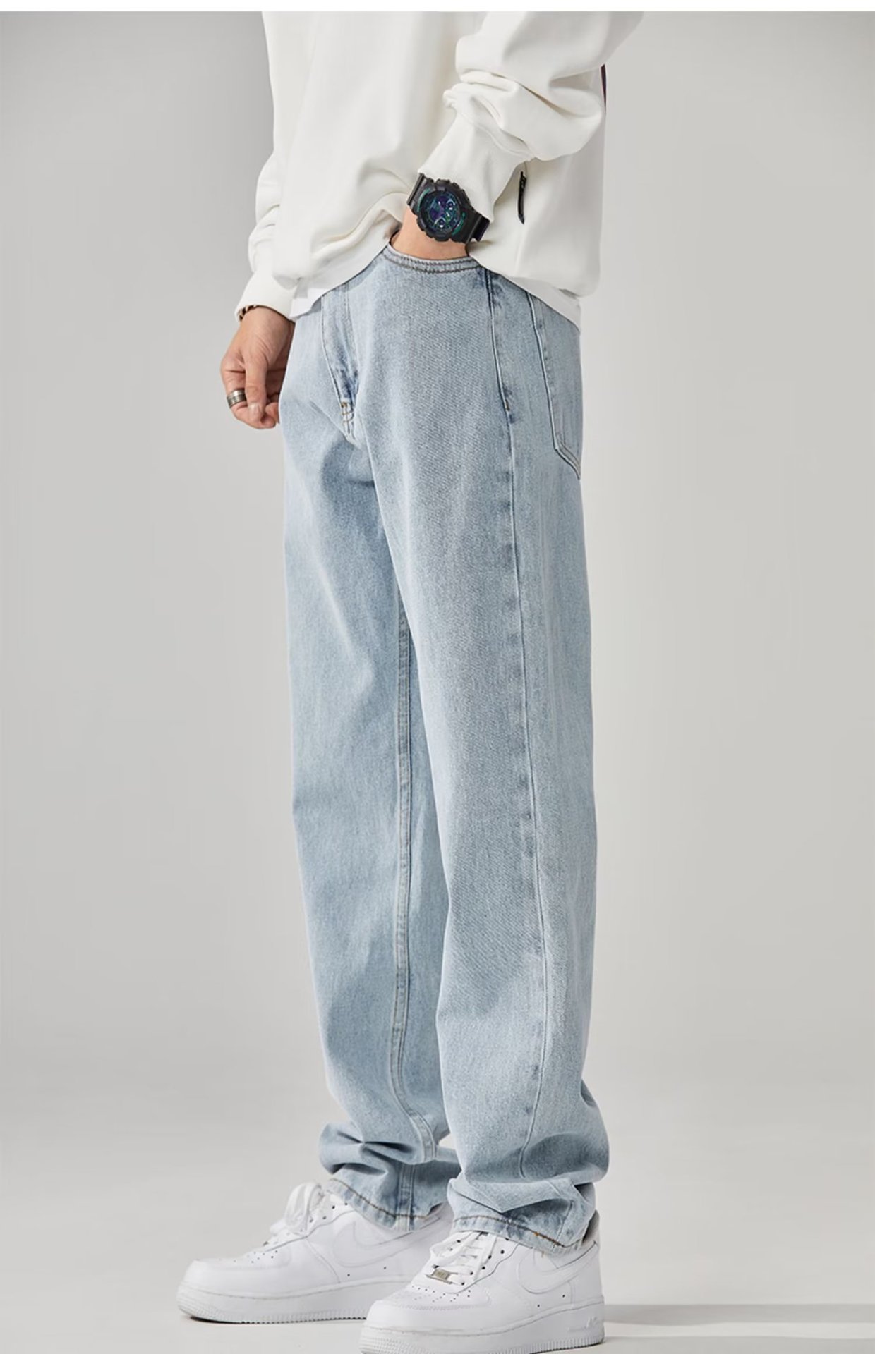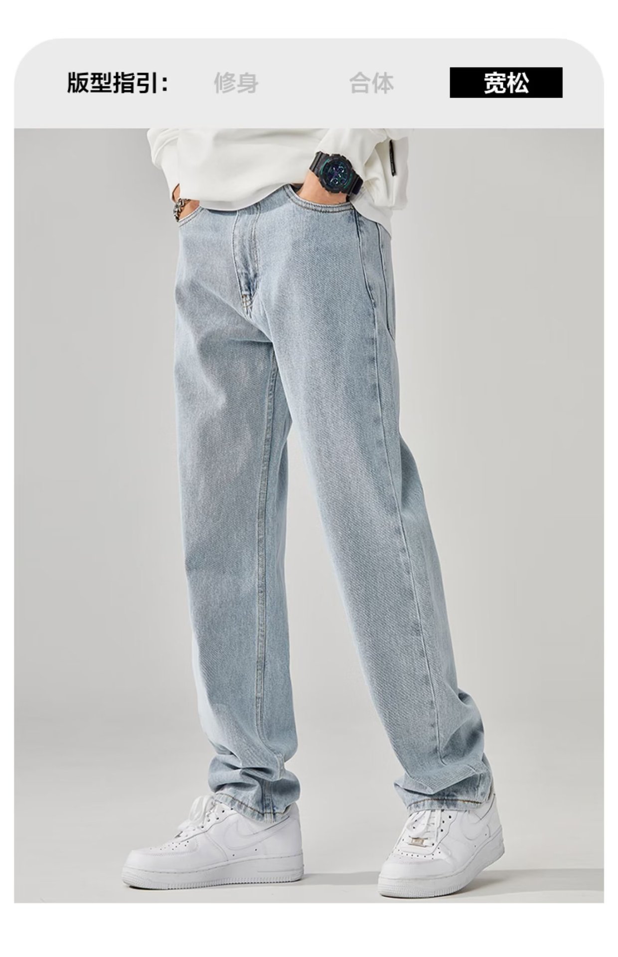港風潮男純色新款2025個性純色牛仔褲嘻哈ins潮高街潮流痞帥長褲