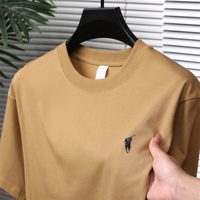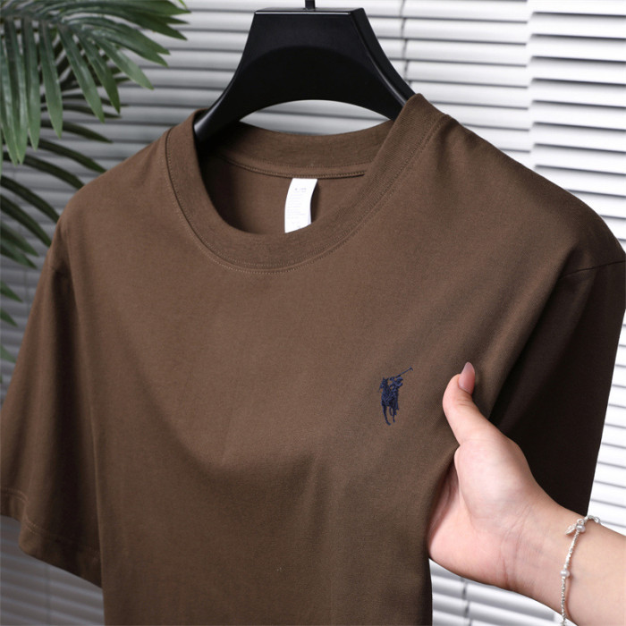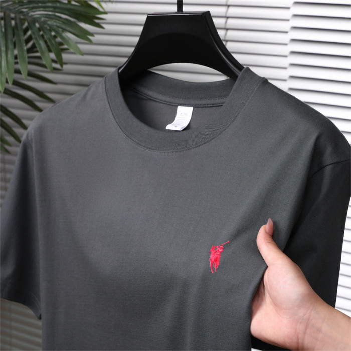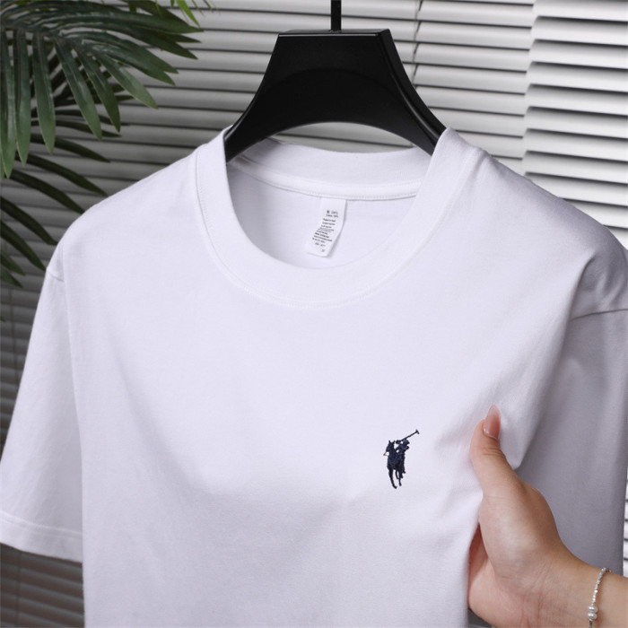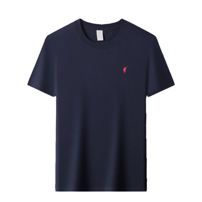 短袖男T恤夏季純棉寬松休閒百搭半袖純色中青年刺綉圓領體恤男