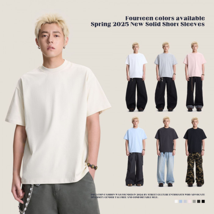 2025年新款CATTEE索羅娜夏季250G重磅短袖男T恤純色寬松百搭打底