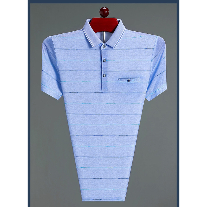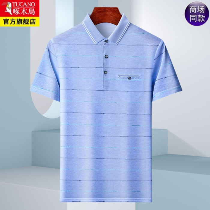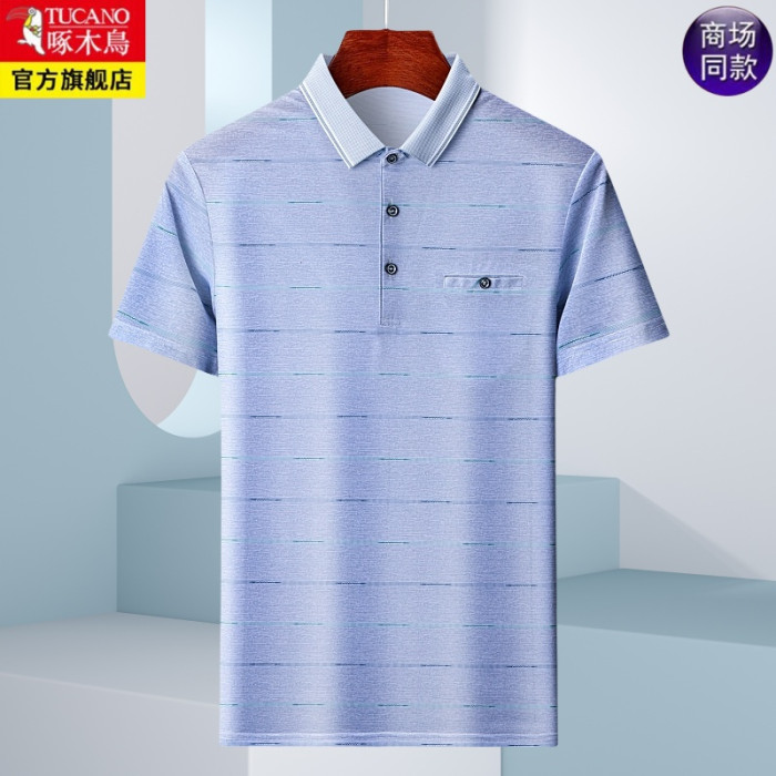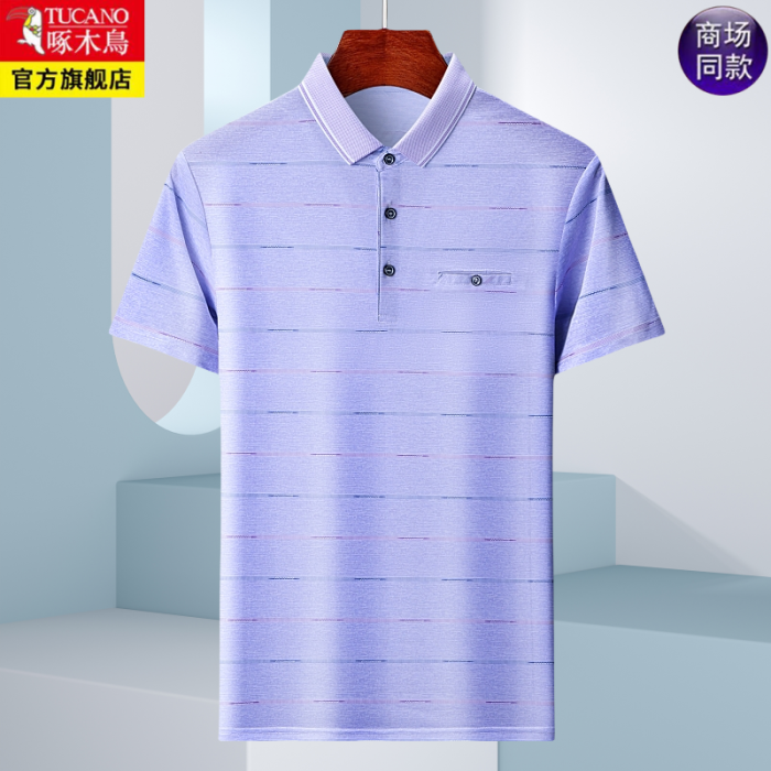 啄木鳥夏季短袖POLO衫男T恤中年爸爸裝翻領半袖大碼口袋夏裝上衣