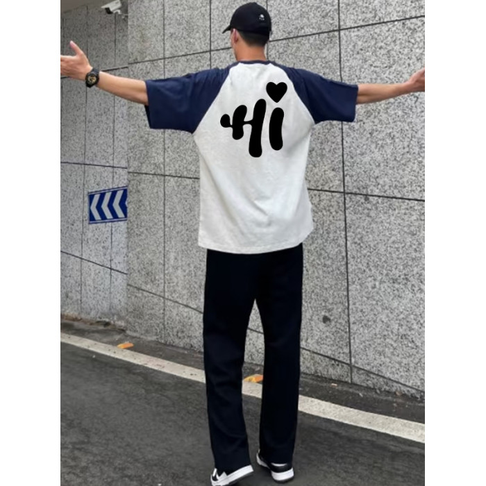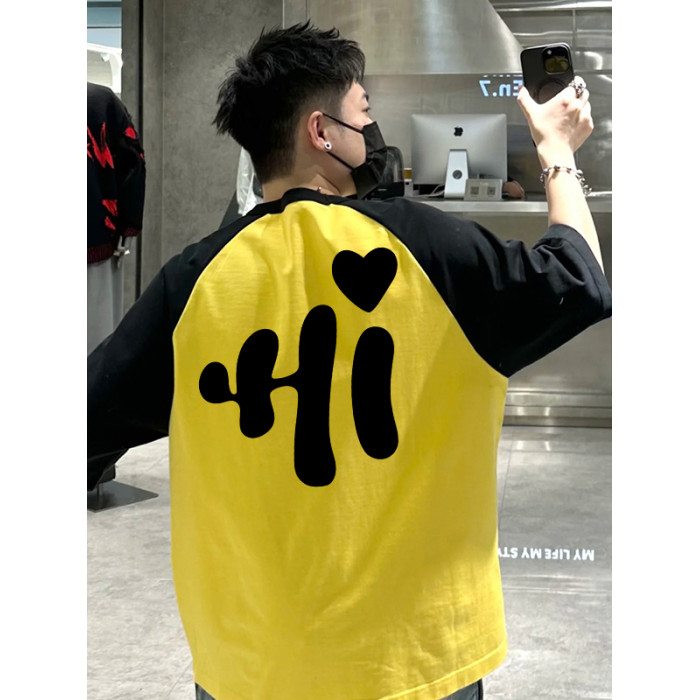 重磅美式插肩拼接260g短袖男T恤衫涼感防紫外線潮流個性情侶夏季