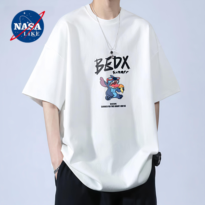 NASA聯名純棉T恤夏季男潮流休閒百搭時尚ins潮牌印花寬松短袖t恤