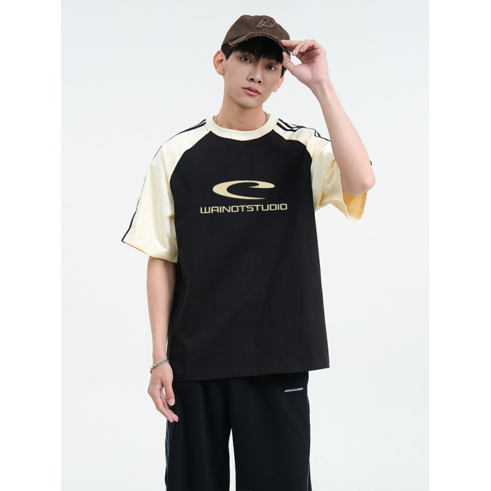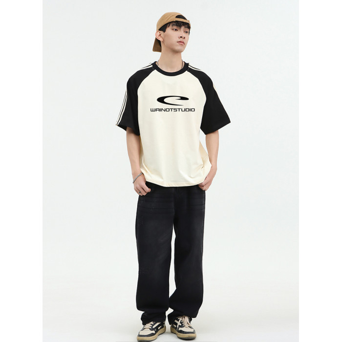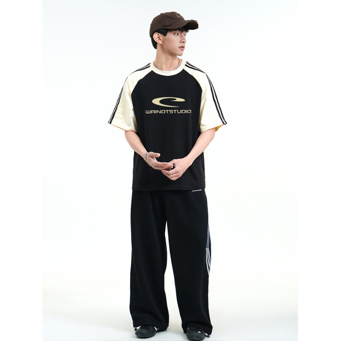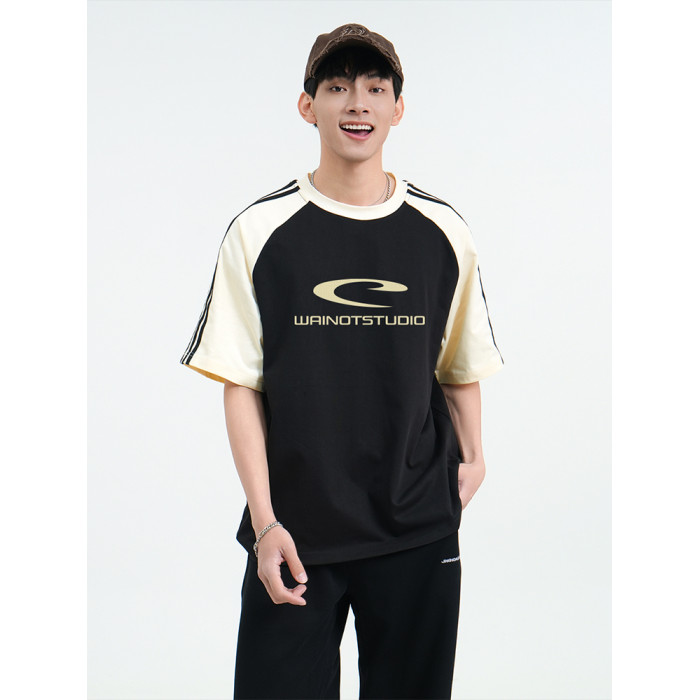 WAINOT情侶美式三條杠短袖男t恤2025新款純棉上衣夏季男女同款
