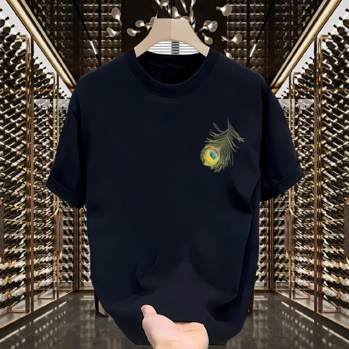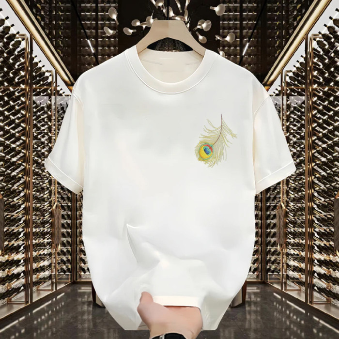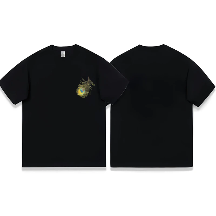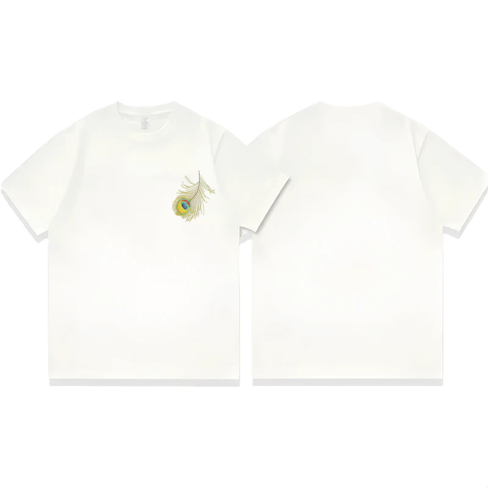 倉石一樹夏季圓領潮流短袖男t恤孔雀開屏國潮休閒寬松情侶裝上衣