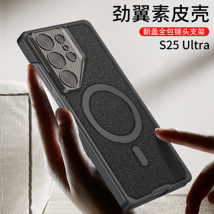 鏡頭支架手機殼適用三星S25ultra無線充SamsungS25u保護套素皮套